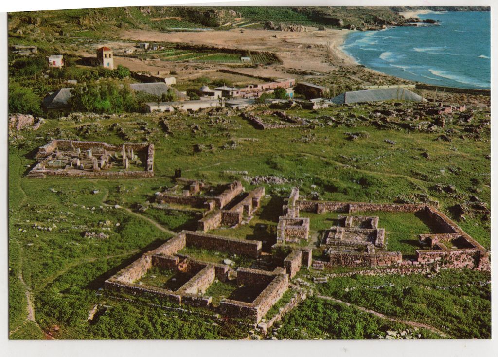 Ταχυδρομική κάρτα, χαρτόνι, 10.5×15 εκ. Αναπαραγωγή φωτογραφίας, έγχρωμη, με εικονιζόμενα τα φοινικικά χαλάσματα στη Βύβλο.