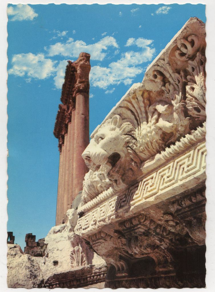 Ταχυδρομική κάρτα, χαρτόνι, 15×10 εκ.. Αναπαραγωγή φωτογραφίας, έγχρωμη, με εικονιζόμενες τις έξι κολώνες του ναού του Δία στην Baalbeck.