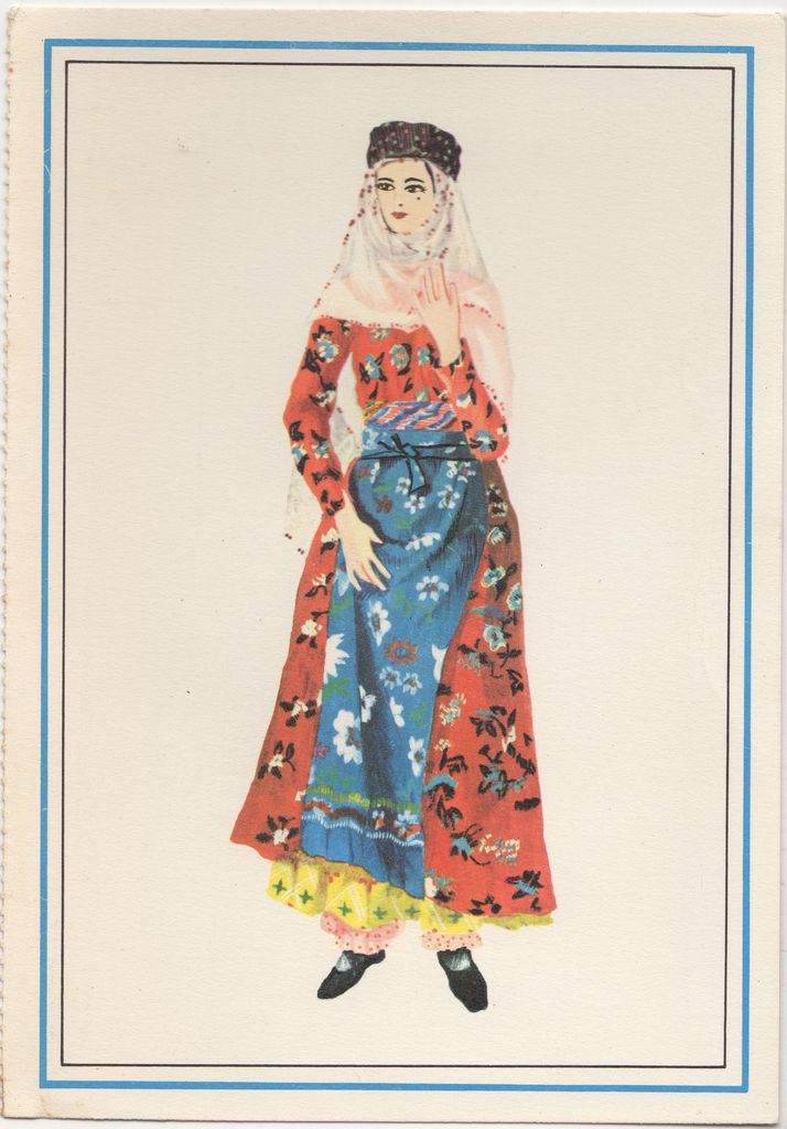 Ταχυδρομική κάρτα, χαρτόνι, 10.5×15 εκ., με εικονιζόμενη αναπαραγωγή σύγχρονου κουρδικού κοστουμιού.