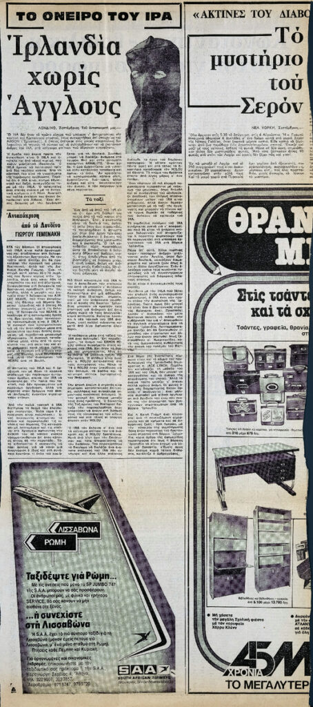 Απόκομμα της εφημερίδας “Τα Νέα” (06/09/1979), δημοσίευσης άρθρου το οποίο αναφέρεται στην στάση της ελληνικής κυβερνητικής πολιτικής απέναντι στην Μικρασιατική Εκστρατεία.