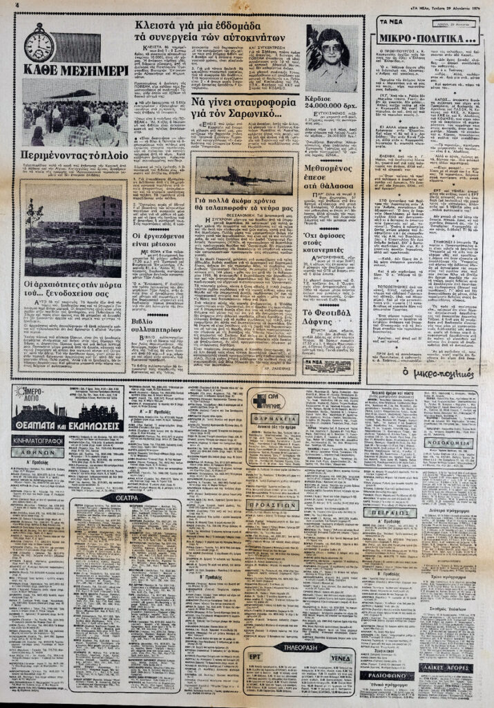 Απόκομμα της εφημερίδας “Τα Νέα” (29/08/1979), δημοσίευσης άρθρου αφιερωμένου στη δράση του Μητροπολίτη Σμύρνης Χρυσόστομου.