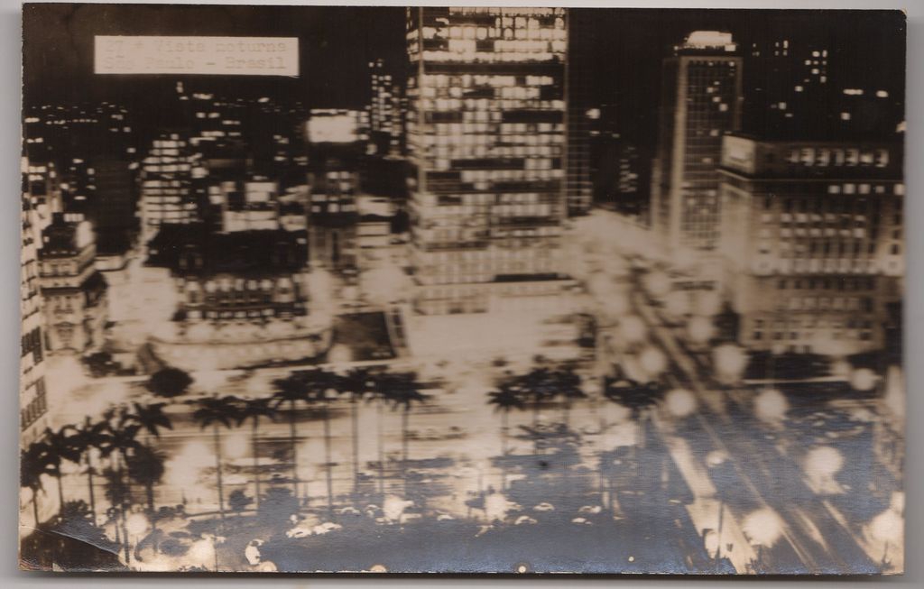 Φωτογραφία- ταχυδρομική κάρτα, χαρτόνι, 9×14 εκ. Επάνω αριστερά, λεζάντα στα ισπανικά “vista noturna Sao Paolo, Brasil”.