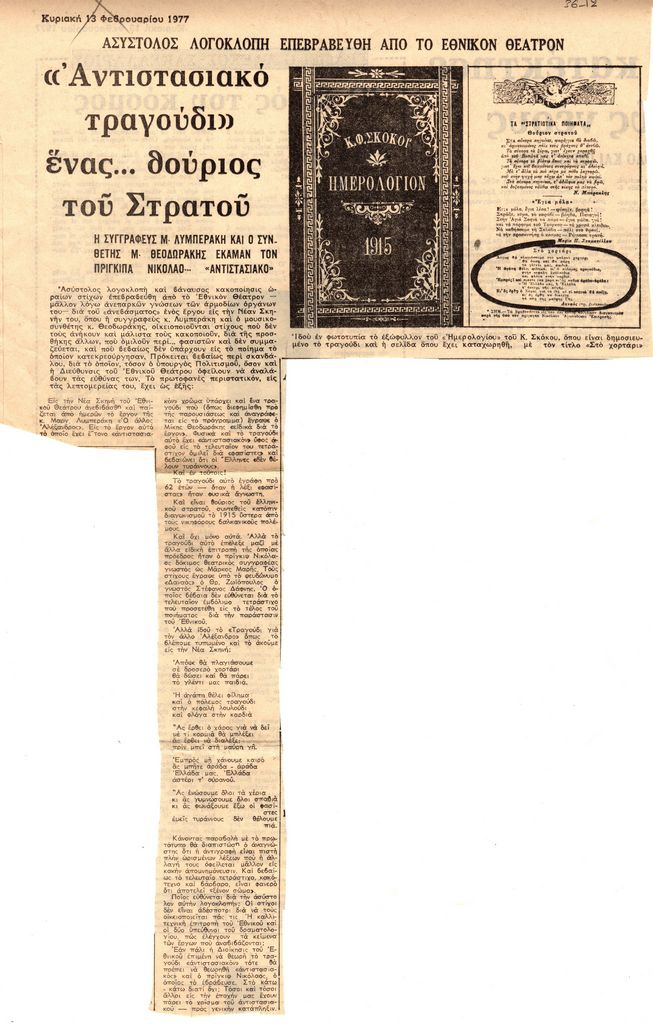 «Αντιστασιακό τραγούδι» ένας… θούριος του Στρατού