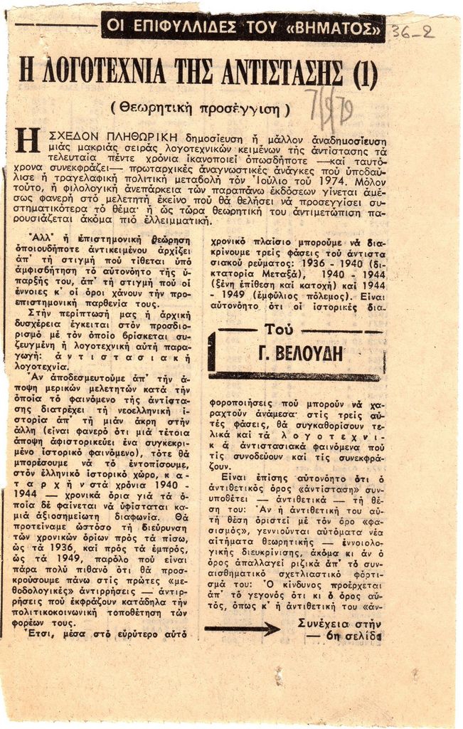 Γιώργος Αθ. Βελουδής (1935 - 2014) - Αρθρογράφος