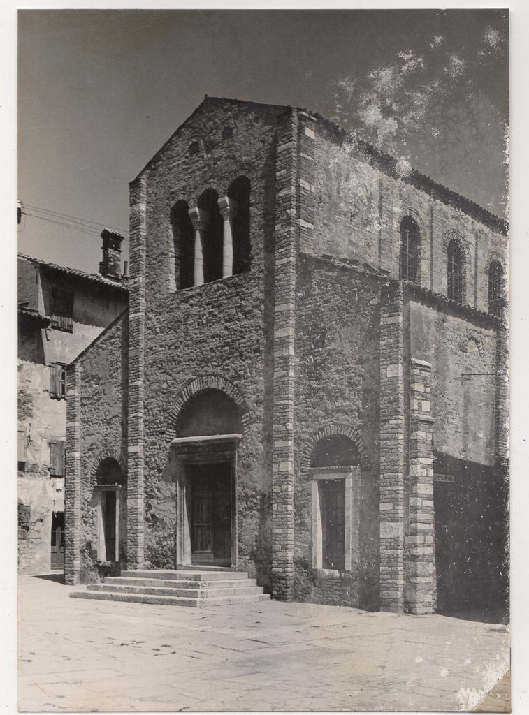 Ταχυδρομική κάρτα- φωτογραφία, α/μ, φωτογραφικό χαρτί, 15×10 εκ. Διακρίνεται η κύρια όψη της Santa Maria delle Grazie στην Grado.