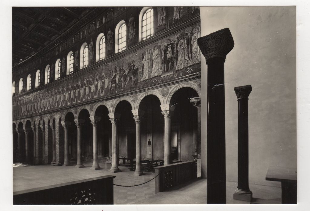 Ταχυδρομική κάρτα- φωτογραφία, α/μ, φωτογραφικό χαρτί, 10×15 εκ. Διακρίνεται εσωτερικό τμήμα ναού στην Ραβέννα.