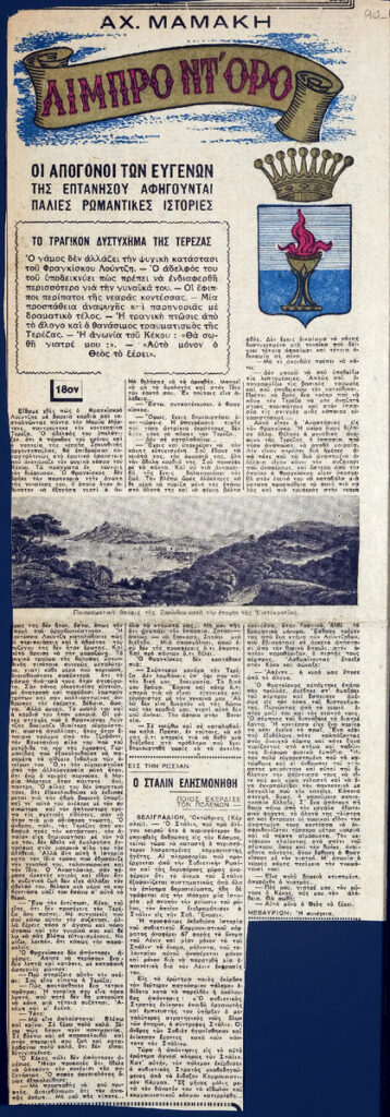 Απόκομμα εφημερίδας, όπου δημοσιεύεται άρθρο που αναφέρεται στην αριστοκρατική οικογένεια των Λούντζη, η οποία γράφτηκε στη Χρυσή Βίβλο κατά την τελευταία περίοδο της Ενετοκρατίας.