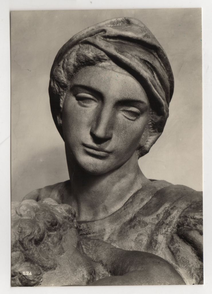Φωτογραφία- ταχυδρομική κάρτα, α/μ, φωτογραφικό χαρτί, 15×10 εκ. Λεπτομέρεια έργου του Michelangelo Buonarroti.