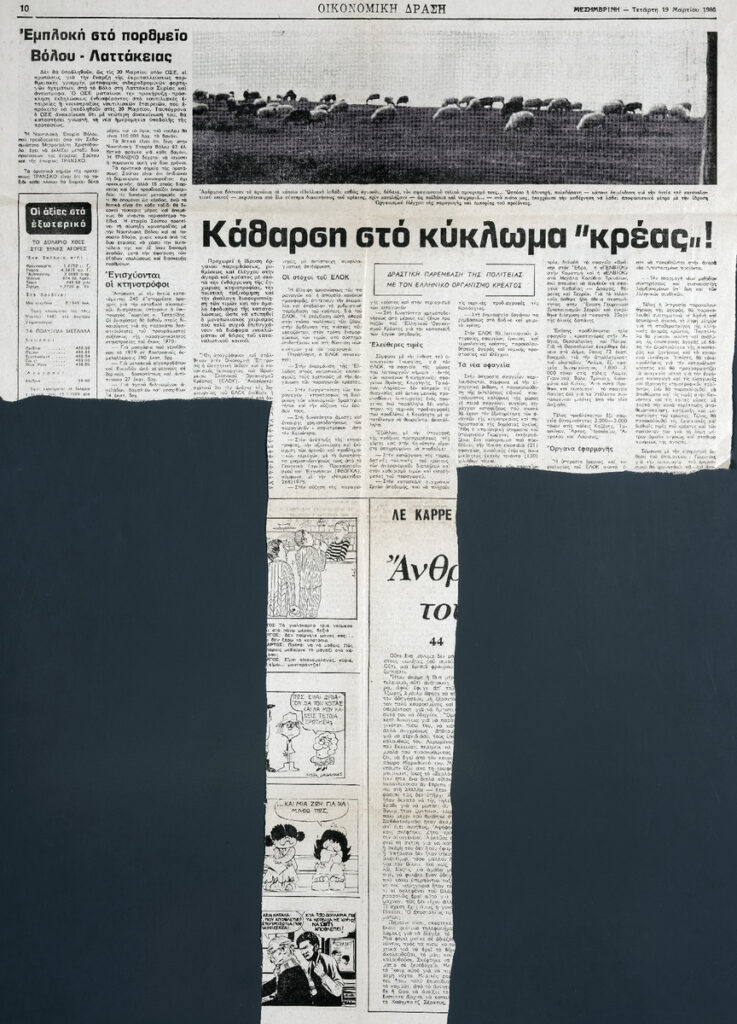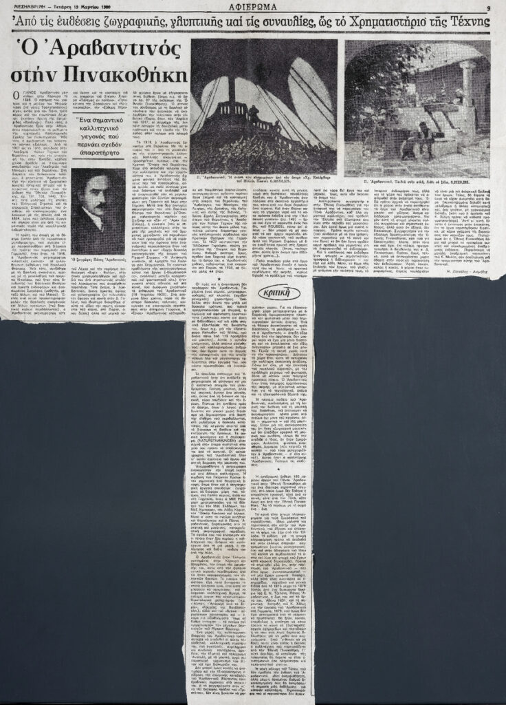 Απόκομμα εφημερίδας “Μεσημβρινή” (19/03/1980), όπου δημοσιεύονται κριτικές για την έκθεση του Αραβαντινού στην Εθνική Πινακοθήκη στην Αθήνα