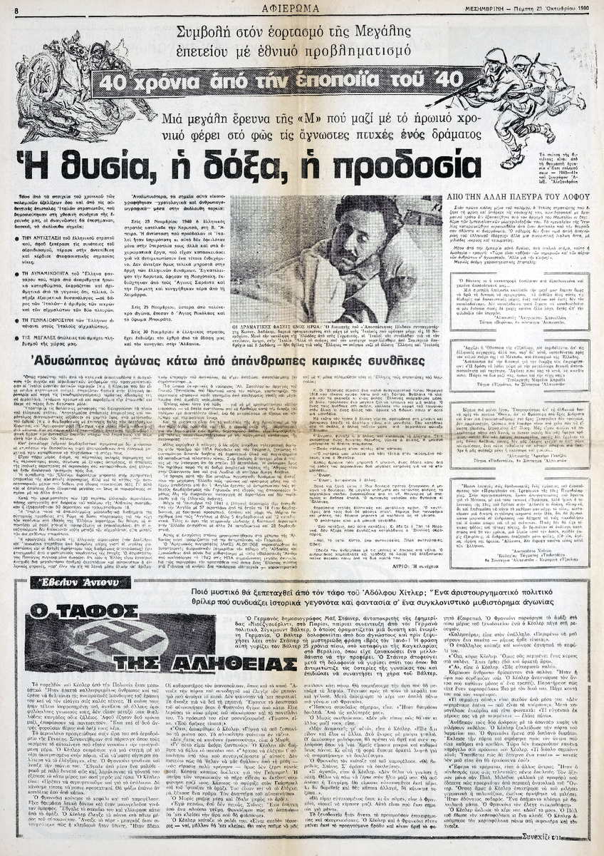 Απόκομμα της εφημερίδας “Μεσημβρινή” (23/10/1980). Αφιέρωμα με αφορμή την επέτειο της 28ης Οκτωβρίου του 1940.