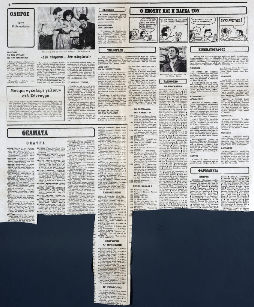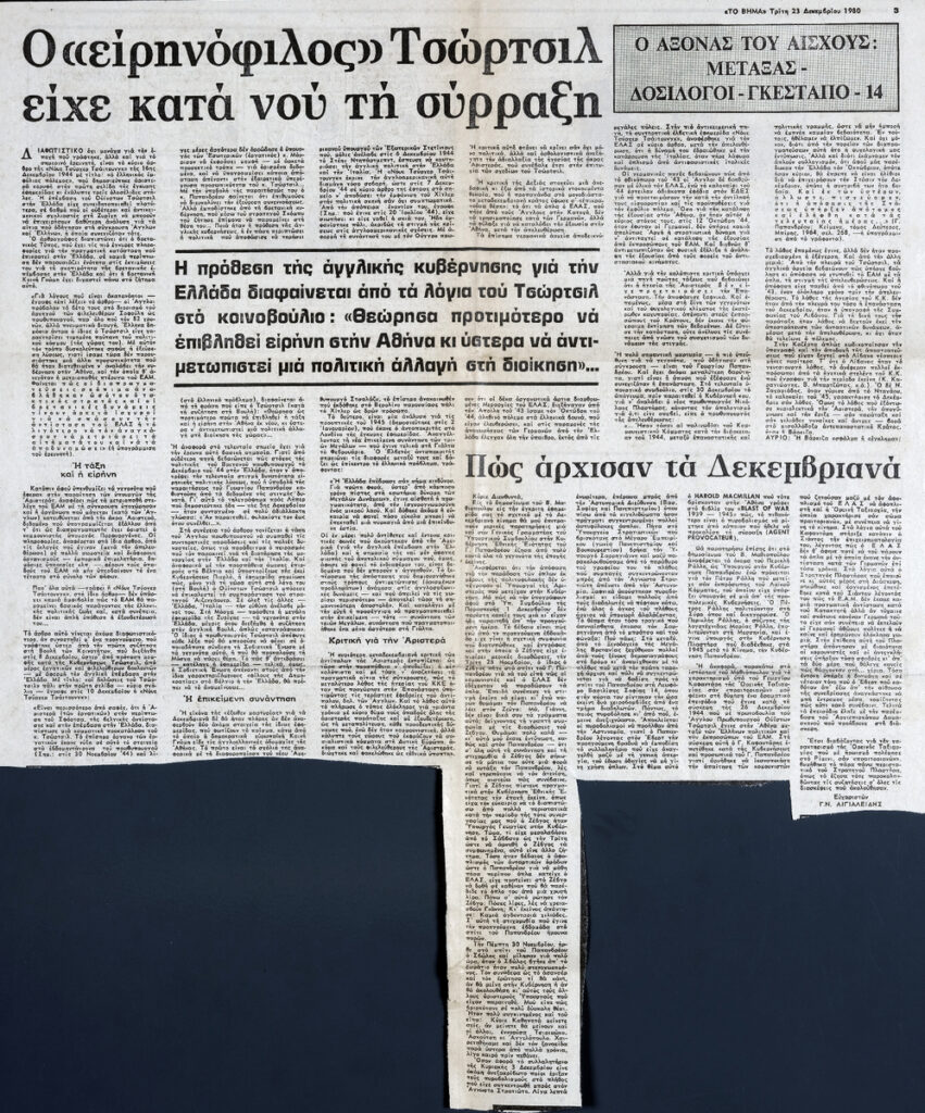 Απόκομμα της εφημερίδας ‘Το Βήμα’ (23/12/1980). Εντάσσεται στο αφιέρωμα: “Ο Άξονας του αίσχους: Μεταξάς – Δοσίλογοι – Γκεστάπο” , μέρος 14.