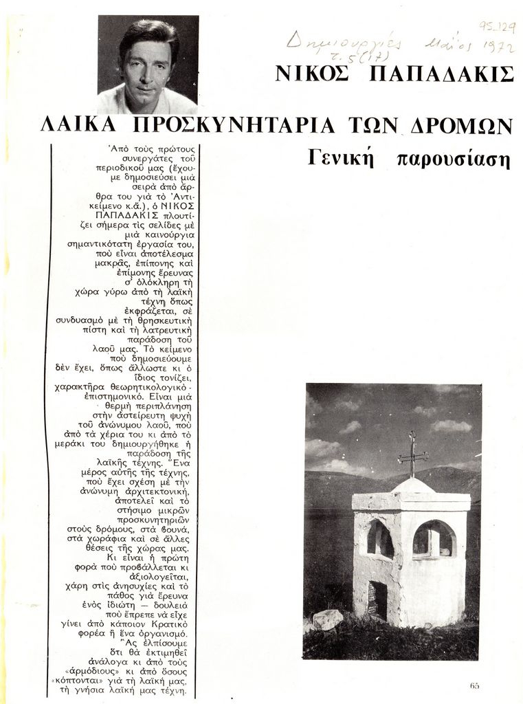 Πρόκειται για μελέτη του που ερευνά την έκφραση της λαϊκής Τέχνης σε συνδυασμό με τη θρησκευτική πίστη και τη λαϊκή ελληνική παράδοση.