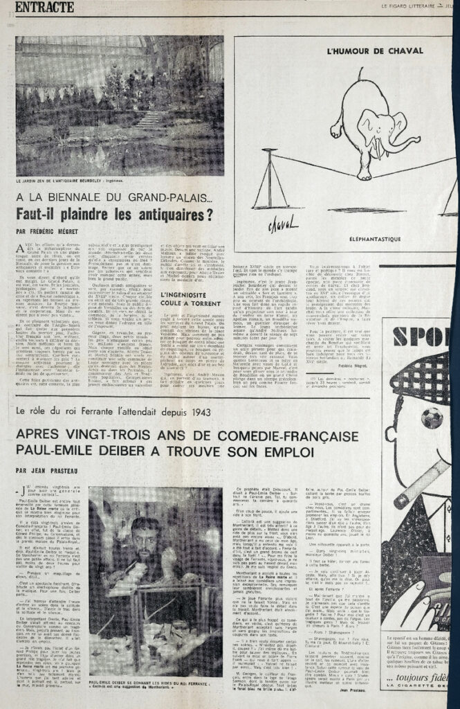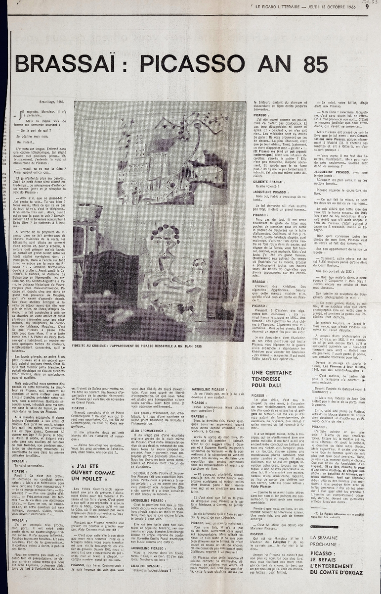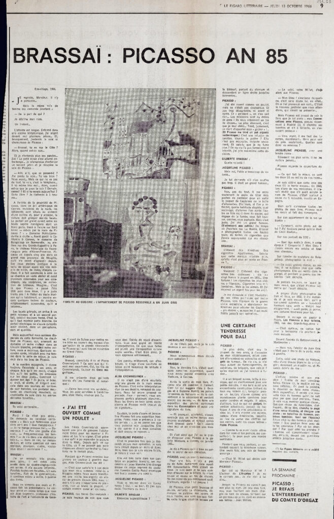 Απόκομμα της εφημερίδας “Le Figaro”, ένθετο “Le Figaro Littéraire”, έντυπο, στα ελληνικά, χαρτί, διπλής όψης, 60×36,5 εκ., όπου δημοσιεύεται άρθρο για τον ζωγράφο Pablo Picasso. Το απόσπασμα εικονογραφείται.