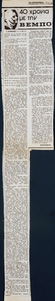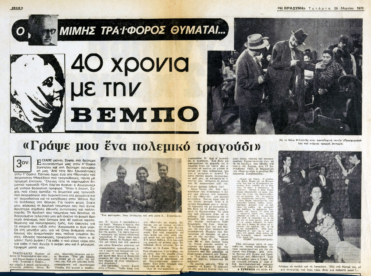 Απόκομμα της εφημερίδας “Η Βραδυνή” (29/03/1978). Το άρθρο εντάσσεται στην στήλη “Ο Μίμης Τραϊφόρος θυμάται”.