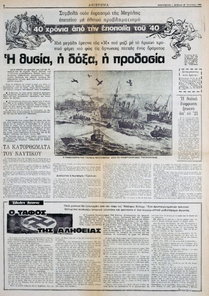 40 χρόνια από την εποποιία του ’40. Η θυσία, η δόξα, η προδοσία : Τα κατορθώματα του Ναυτικού