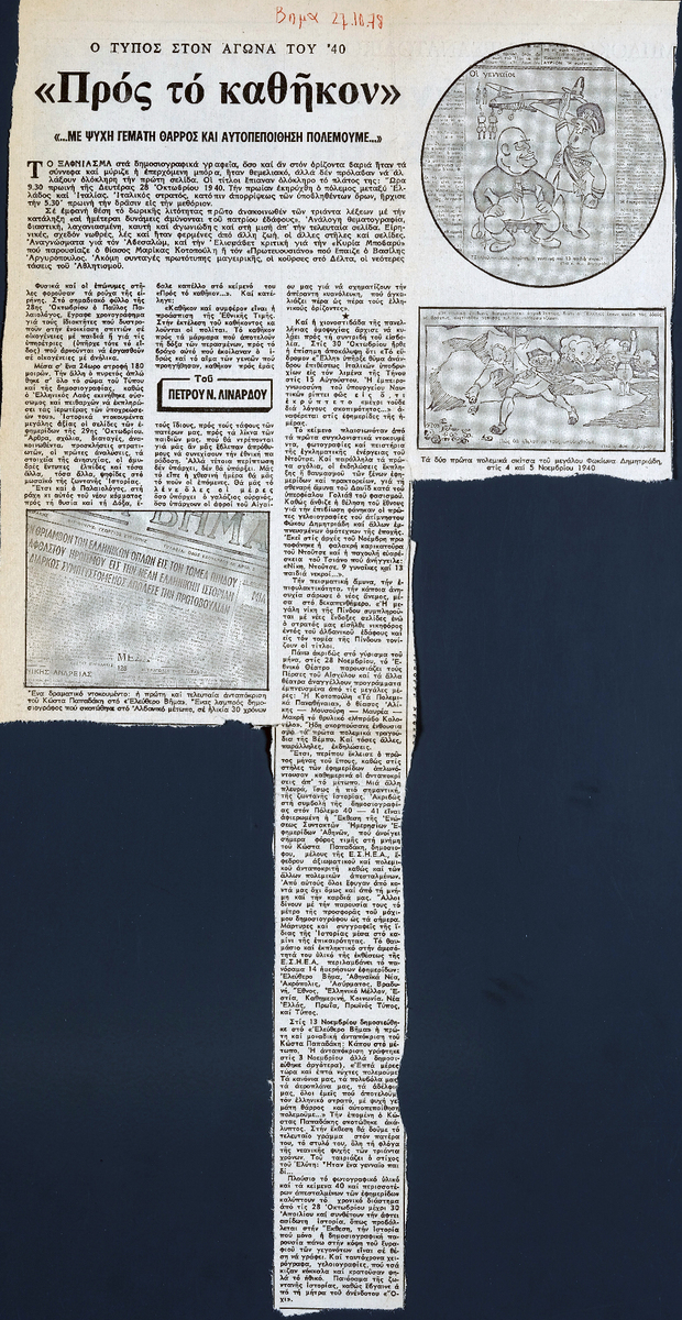 Ο Τύπος στον Αγώνα του ’40. Προς το καθήκον