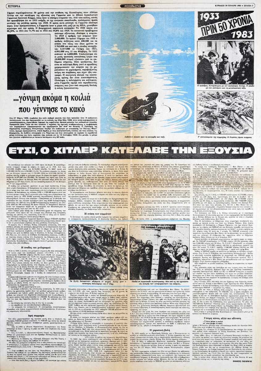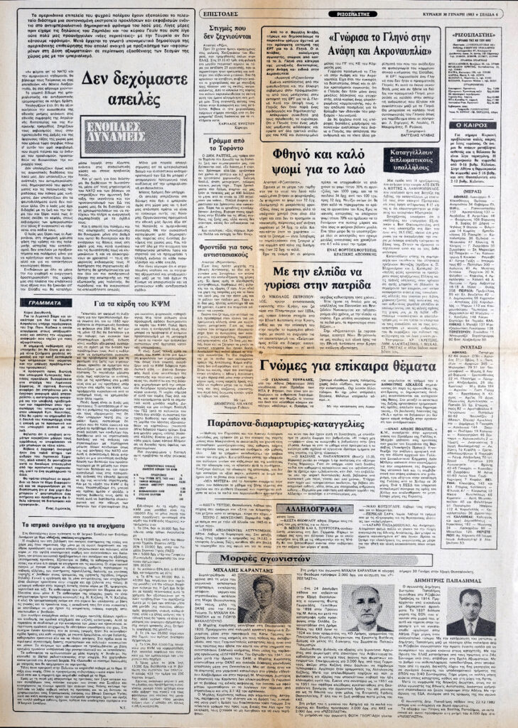 Απόκομμα της εφημερίδας “Ριζοσπάστης” (30/01/1983). Στο ίδιο απόκομμα: “Μορφές αγωνιστών”.