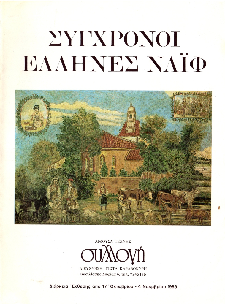 Έντυπο, χαρτί ιλλουστρασιόν, 24×18 εκ., στα ελληνικά, ομαδικής έκθεσης ναϊφ καλλιτεχνών.