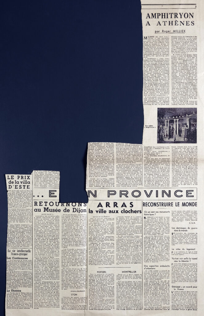 Απόκομμα, έντυπο, στα γαλλικά, χαρτί, δύο όψεις, 60×37,5 εκ., στα γαλλικά, όπου δημοσίευεται άρθρο του R. Milliex. Το τεκμήριο εικονογραφείται.
