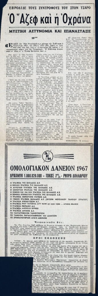 Απόκομμα της εφημερίδας “Ελευθερία” (26/03/1967).