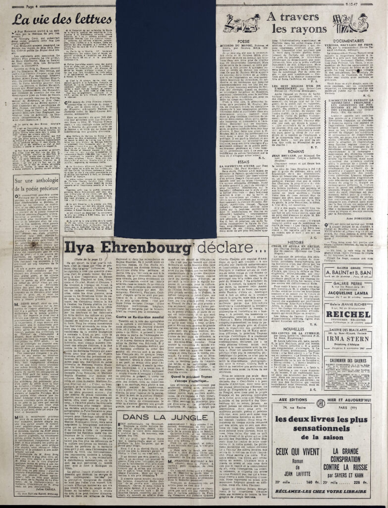Έντυπο, στα γαλλικά, χαρτί, 5 φύλλα, 10 σελίδες, 60×43 εκ., όπου δημοσιεύονται άρθρα σχετικά με την καλλιτεχνική επικαιρότητα.