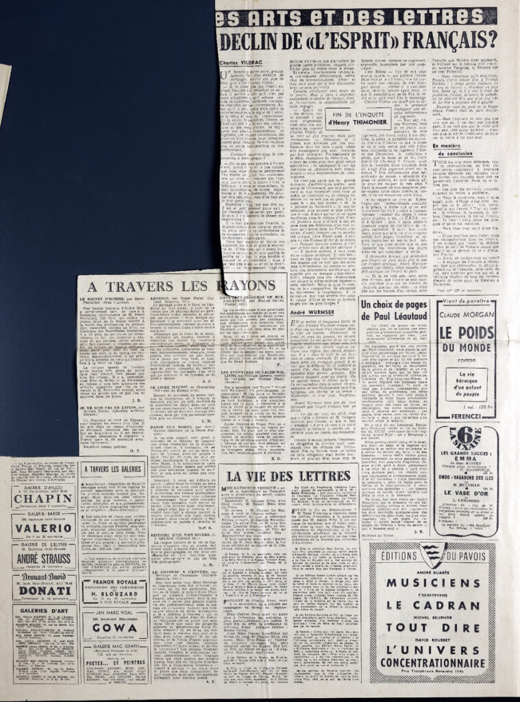 Έντυπο, στα γαλλικά, χαρτί, 5 φύλλα, 10 σελίδες, 60×43 εκ., όπου δημοσιεύονται άρθρα σχετικά με την καλλιτεχνική επικαιρότητα. Το τεκμήριο εικονογραφείται.