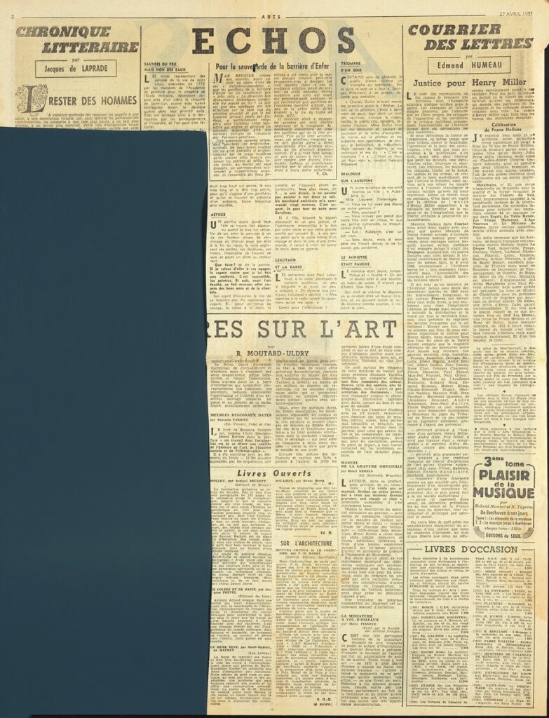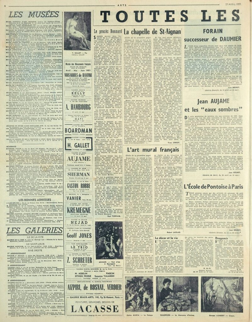 Έντυπο, στα γαλλικά, χαρτί, 4 φύλλα, 8 σελίδες, 56×43 εκ., όπου δημοσιεύονται άρθρα με τίτλους: “Constantin Ganesco (1864-1951)”, “Le Art Mural Français du haut moyen age a ses origines”. Το τεκμήριο εικονογραφείται.