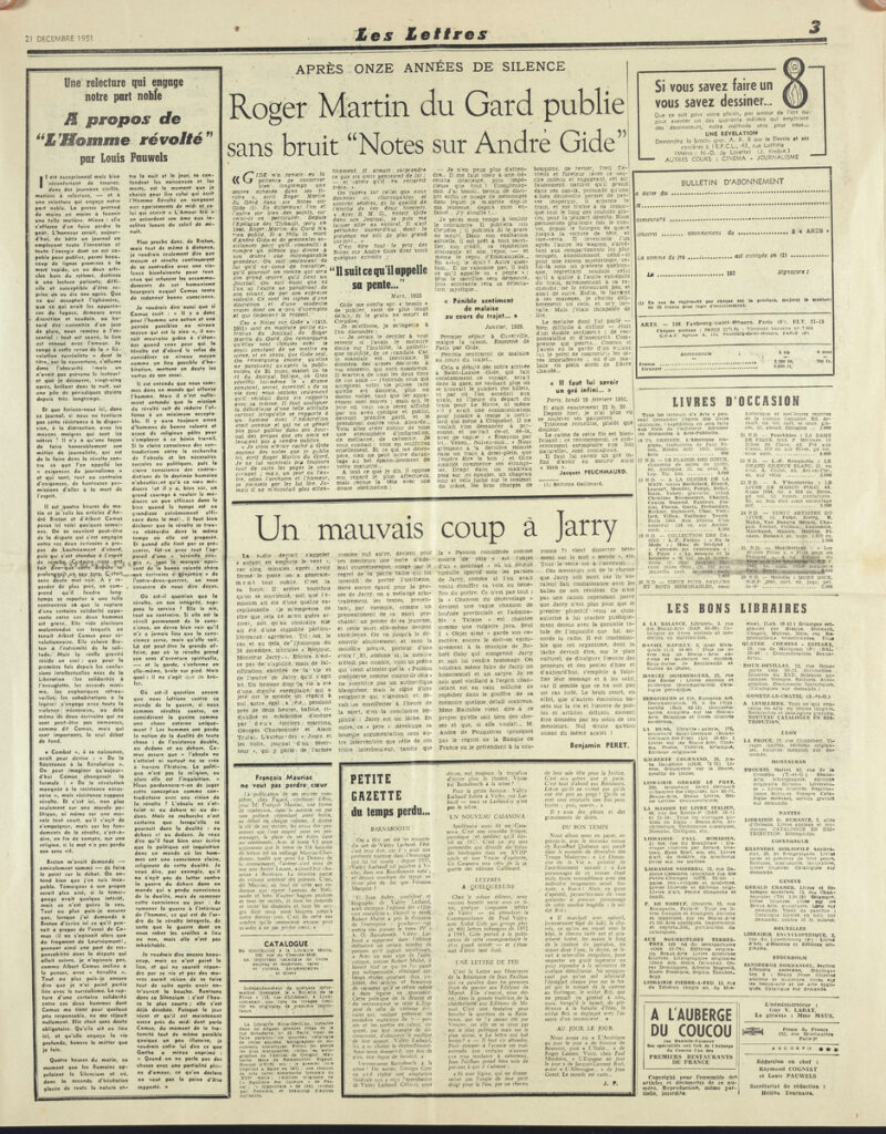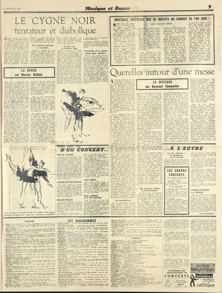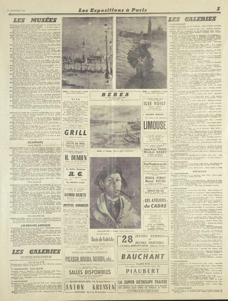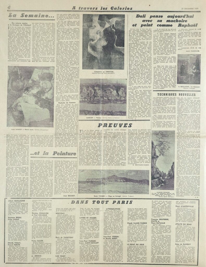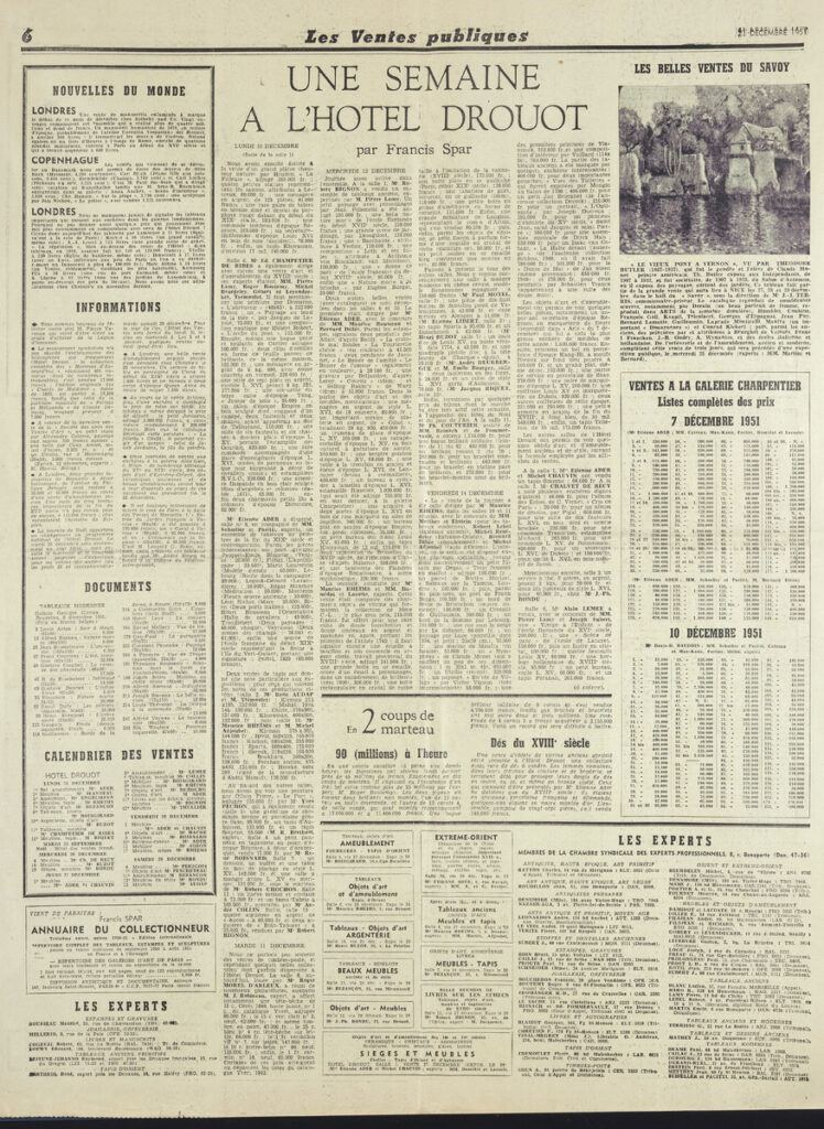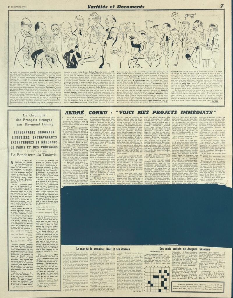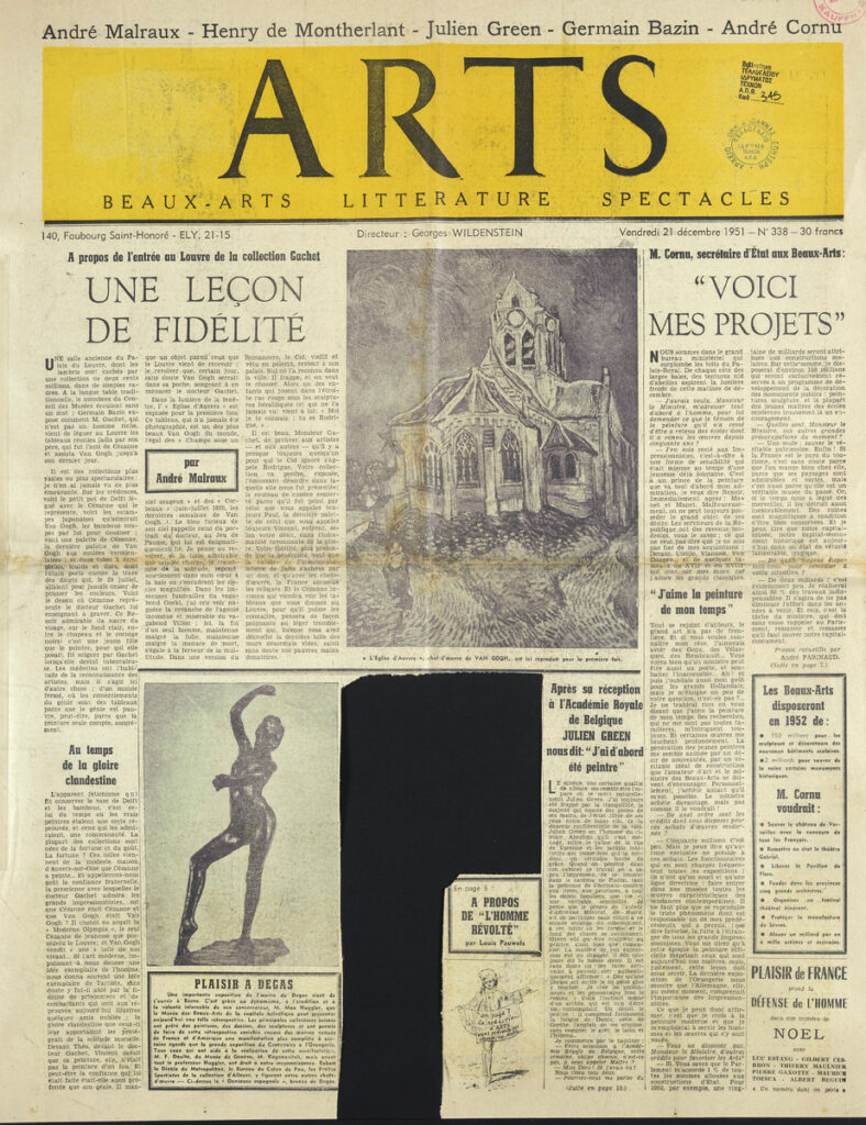 Έντυπο, στα γαλλικά, χαρτί, 5 φύλλα, 10 σελίδες, 56×43 εκ., όπου δημοσιεύονται άρθρα με τίτλους: “A propos de l entrée au Louvre de la collection Gachet. Une leçon de fidélité”, “M. Cornu, secrétaire d’État aux Beaux-Arts: Voici mes projets”,”Plaisir a Dégas”. Το απόκομμα εικονογραφείται.