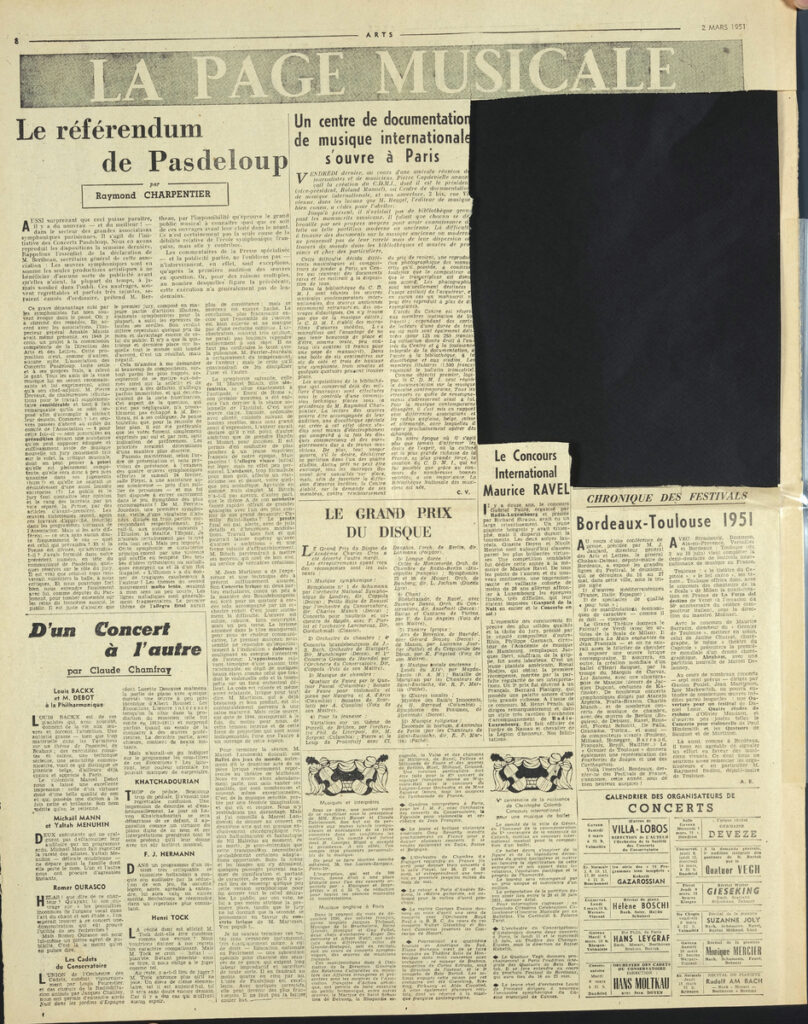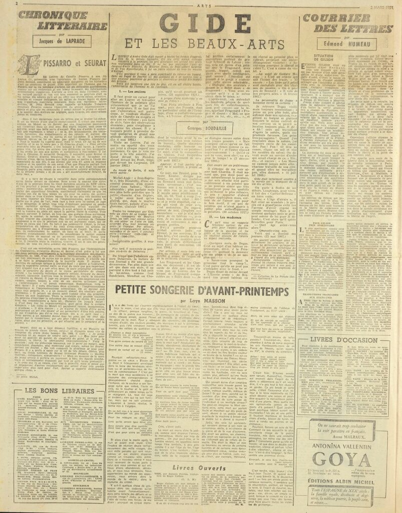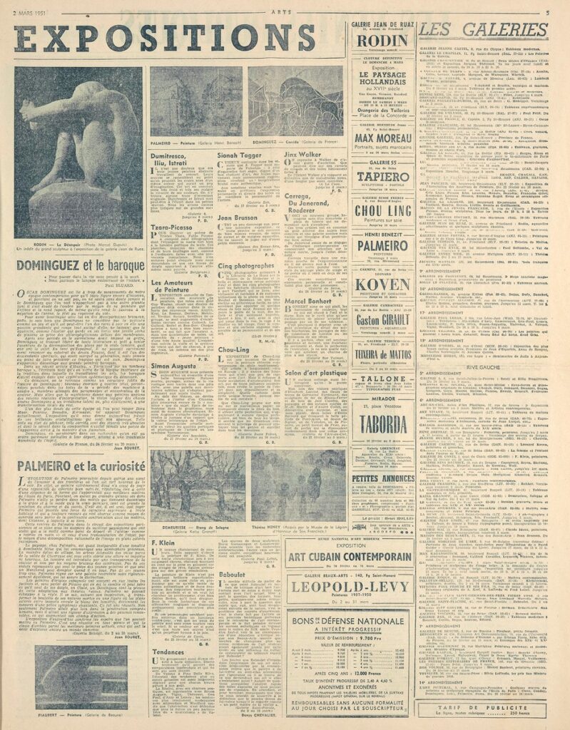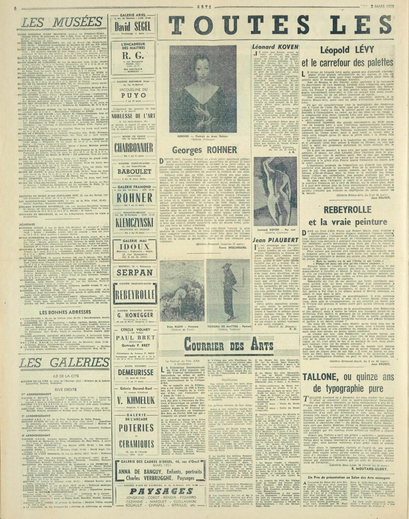 Έντυπο, στα γαλλικά, χαρτί, 4 φύλλα, 8 σελίδες, 56×43 εκ., όπου δημοσιεύονται άρθρα με τίτλους: “Artistes français au Musée de Liége”, “Au Musée D Art Moderne. L Art Cubain contemporain”, “Le Foyer d aujourd hui au Arts ménagers”, “Leopold Levy”. Το τεκμήριο εικονογραφείται.