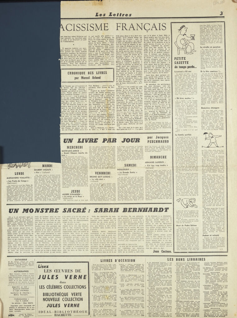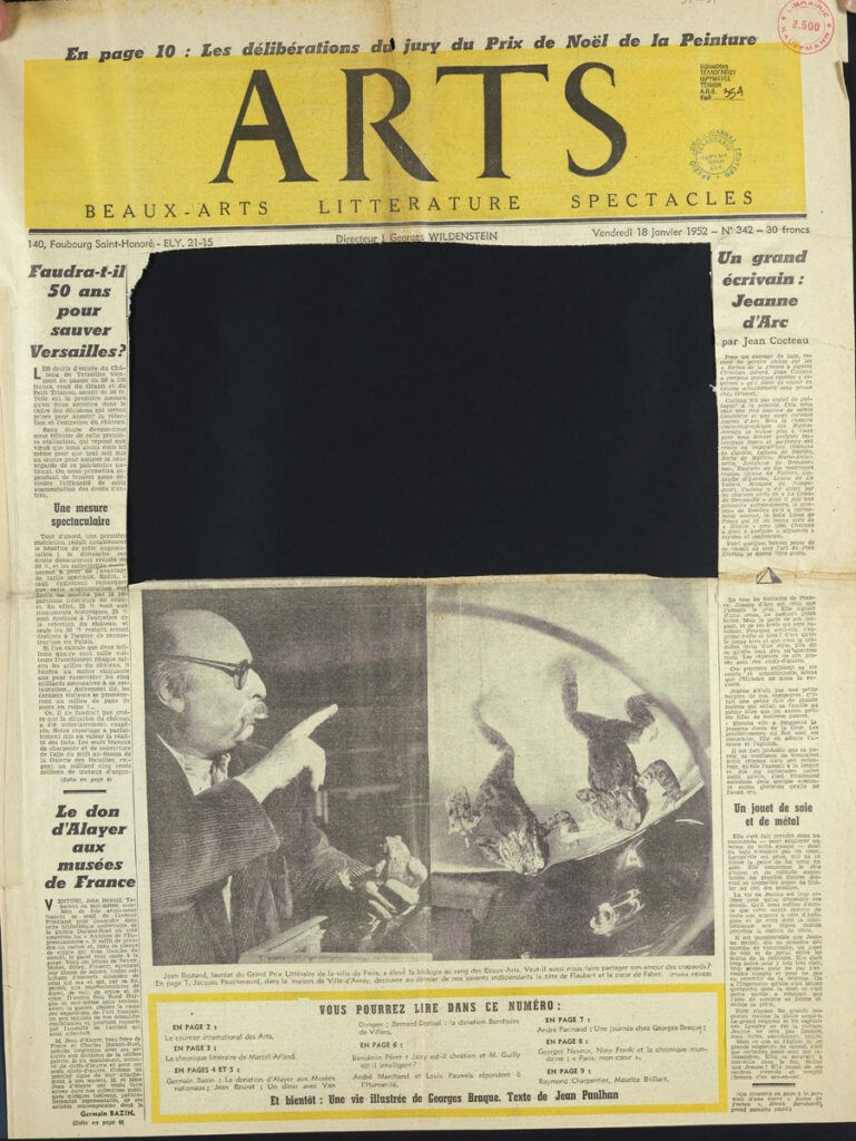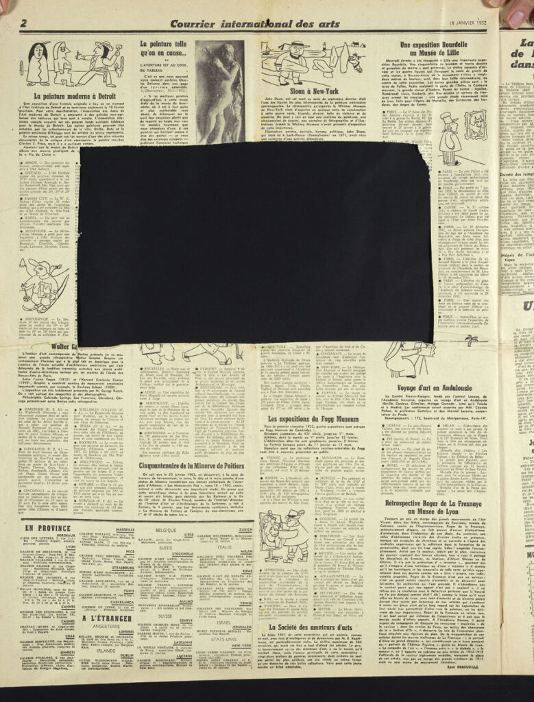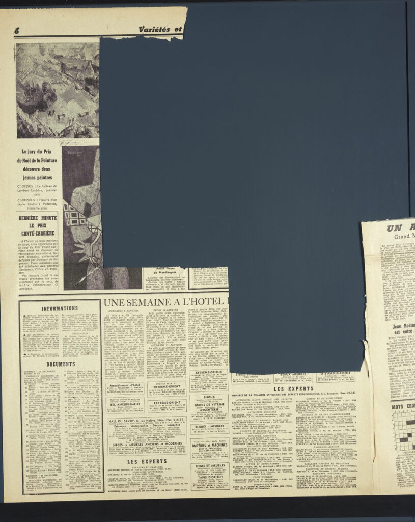 Έντυπο, στα γαλλικά, χαρτί, 5 φύλλα, 10 σελίδες, 56×43 εκ., όπου δημοσιεύονται άρθρα με τίτλους: “Le don d Alayer aux musées de France”, “Un grand écrivain: Jeanne d Arc”, “La Donation Gaston Bernheim de Villers au Musée National d Art moderne”, “Le Prix de Noël de la Peinture”.