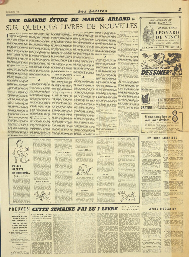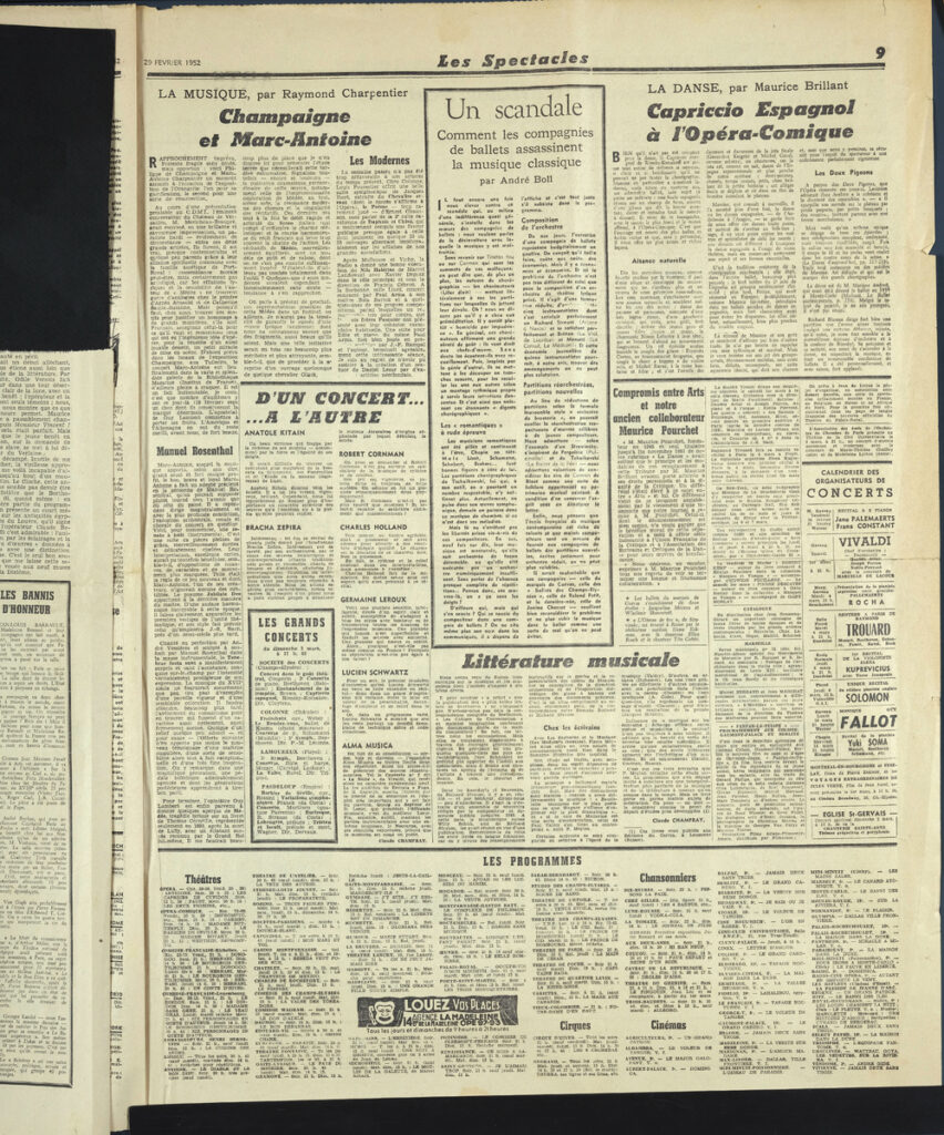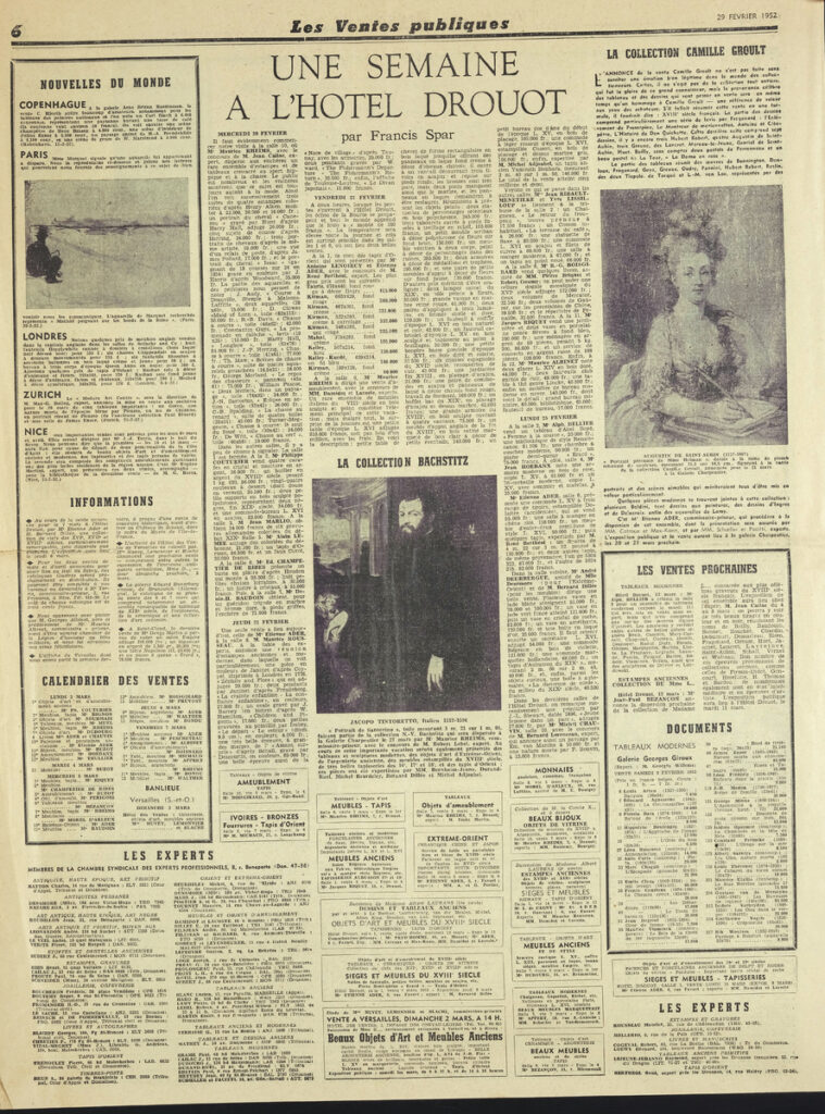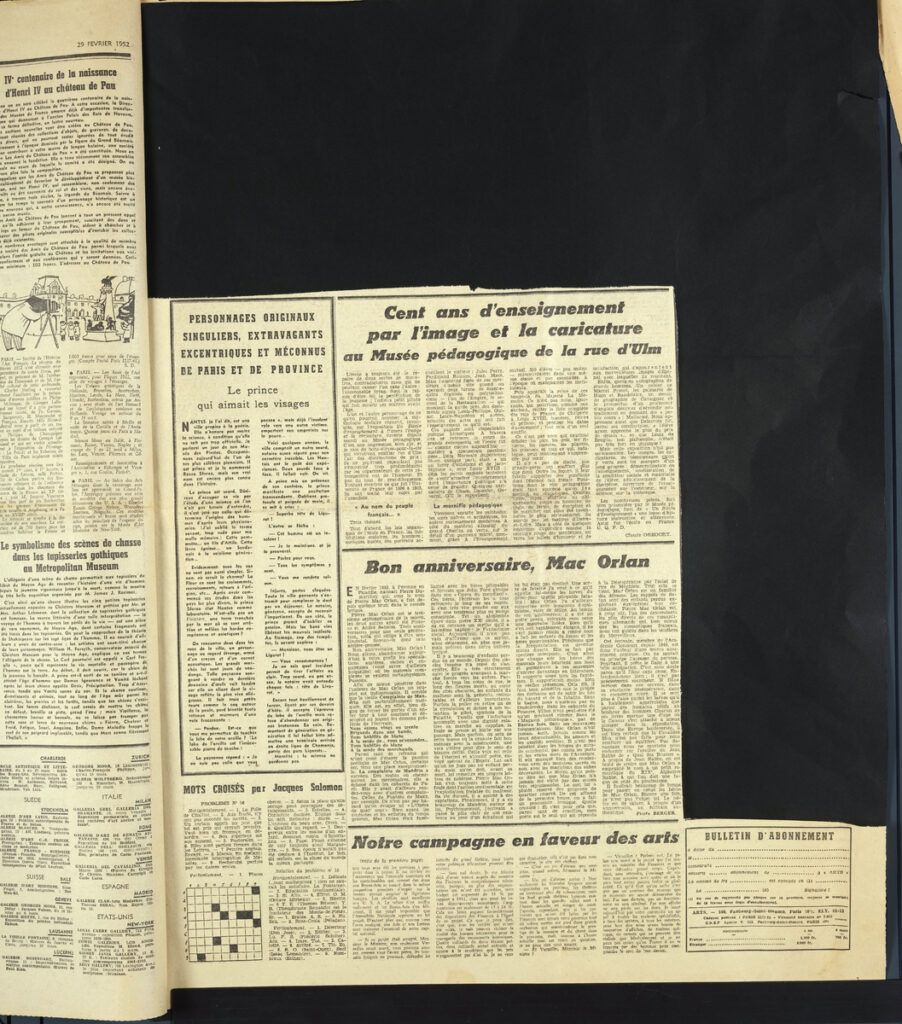Έντυπο, στα γαλλικά, χαρτί, 5 φύλλα, 10 σελίδες, 56×43 εκ., όπου δημοσιεύονται άρθρα με τίτλους: “La mère Larchevêque” de Pissaro au Louvre”, “Cent cinquante dessin du Musée Boymans à la Nationale”, “Van Dongen. Fauve indompte”, “Renoir ou le triomphe du refus”. “Au Salon des Arts Mémagers. Demeures d Artistes Parisiens”. Το τεκμήριο εικονογραφείται.