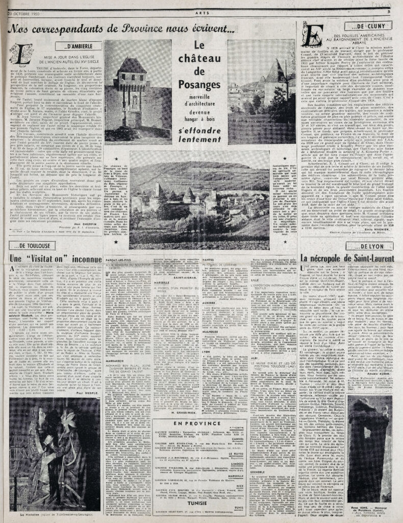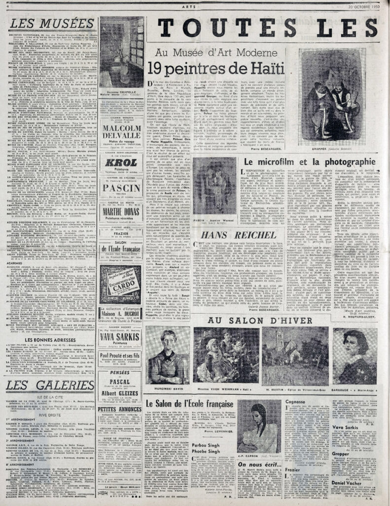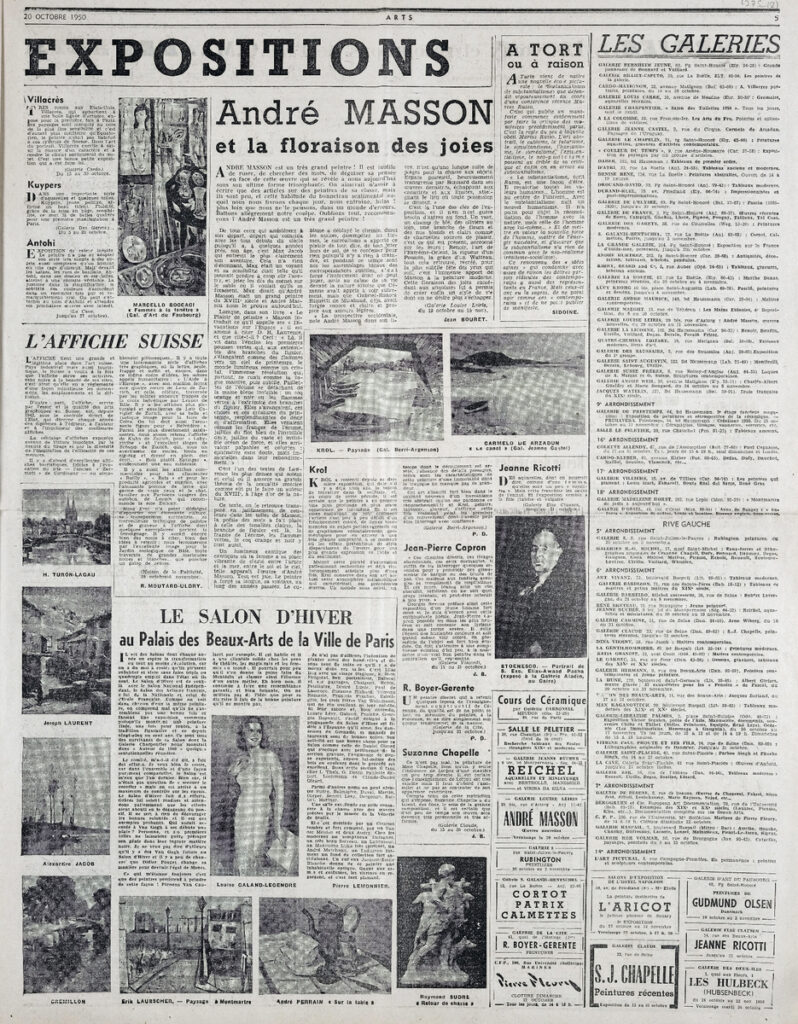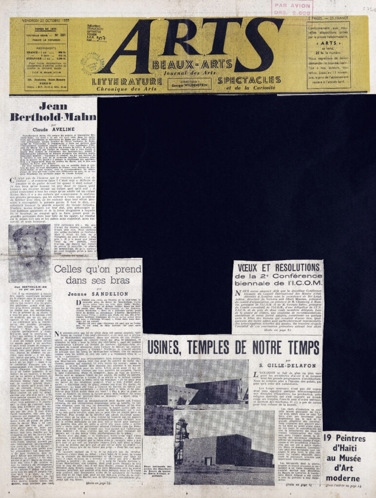 Έντυπο, στα γαλλικά, χαρτί, 3 φύλλα, 6 σελίδες, 56×43 εκ., όπου δημοσιεύονται άρθρα με τίτλους: “Jean Berthold Mahn”, “Toutes les expositions”. Το τεκμήριο εικονογραφείται.