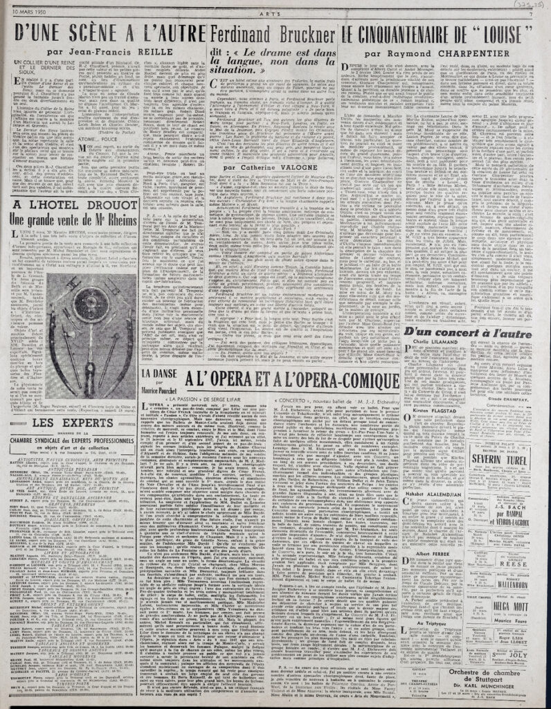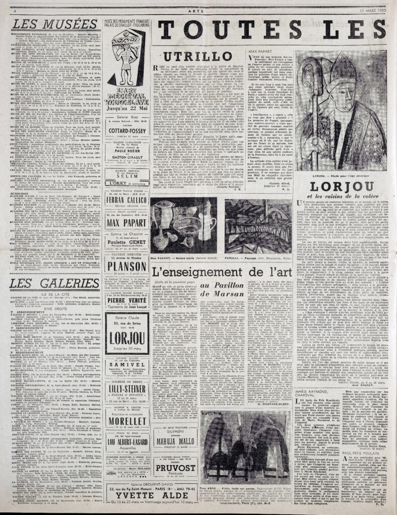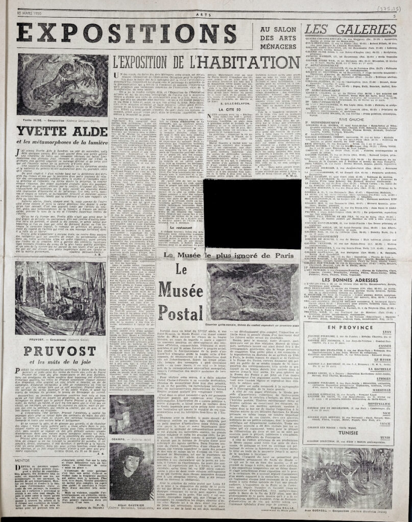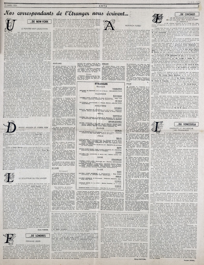 Έντυπο, στα γαλλικά, χαρτί, 4 φύλλα, 8 σελίδες, 56×43 εκ., όπου δημοσιεύονται άρθρα με τίτλους: “Nos correspondants de l’ Etranger nous écrivent”, “Toutes les expositions”.