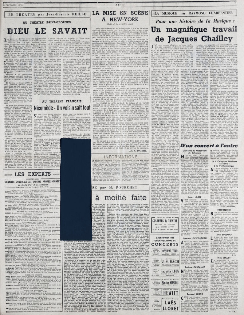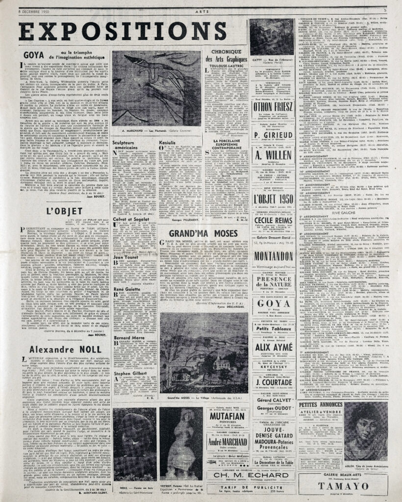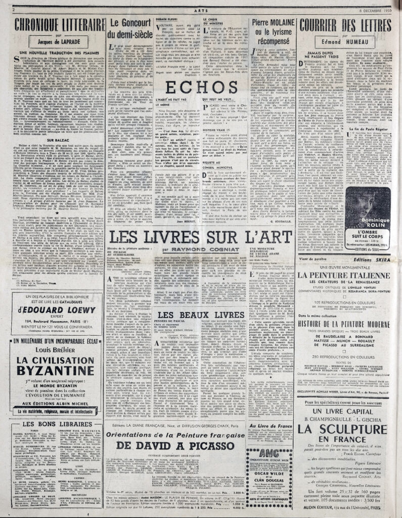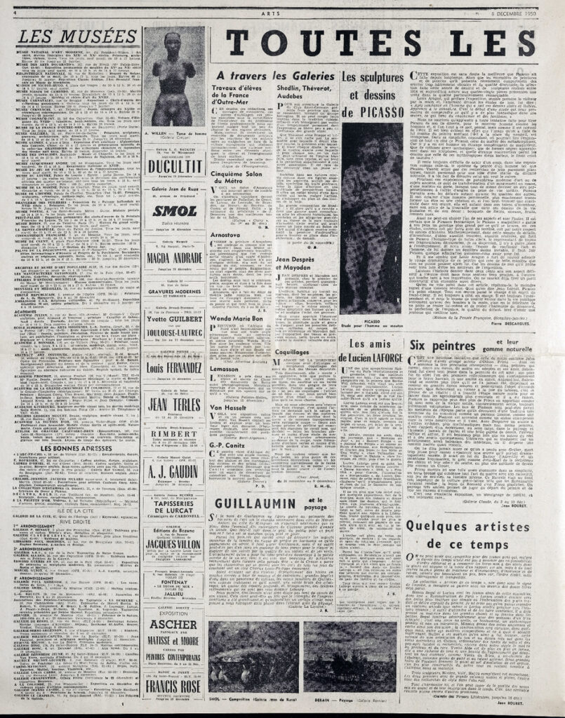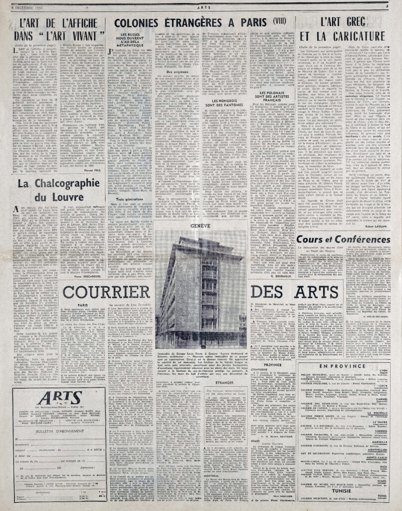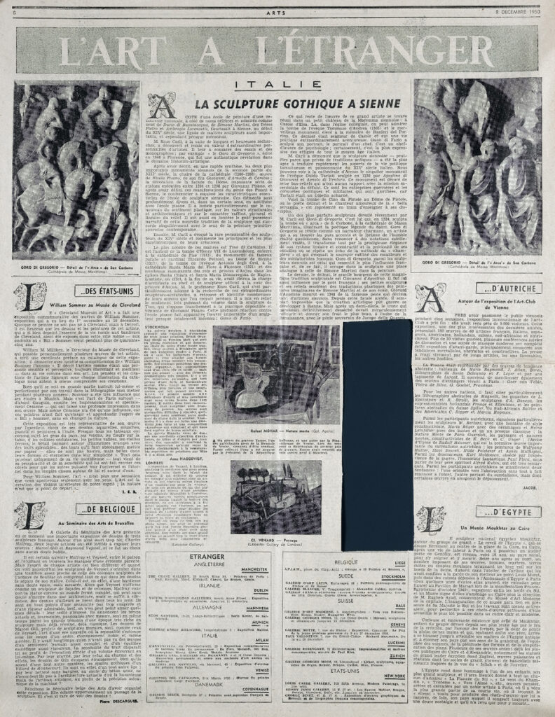 Έντυπο, στα γαλλικά, χαρτί, 4 φύλλα, 8 σελίδες, 56×43 εκ., όπου δημοσιεύονται άρθρα με τίτλους: “La casa Velasquez en péril”, Robert Laulan, “L’ Art grec et les origines de la caricature”, “La France aura sa Biennale de peinture”,”Cet art négligé la sculpture”, “Toutes les expositions”, “L’ art à l’ étranger. Το τεκμήριο εικονογραφείται.