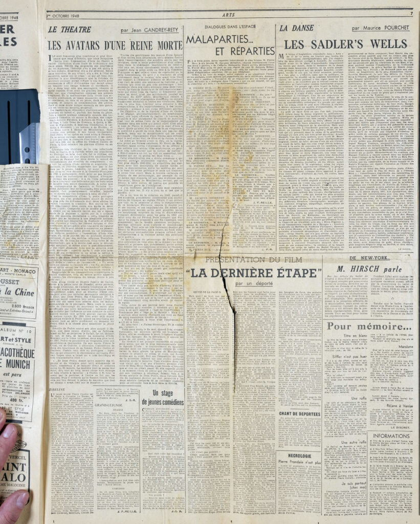 Έντυπο, στα γαλλικά, χαρτί, 3 φύλλα, 6 σελίδες, 60×43 εκ., όπου δημοσιεύεται άρθρο με τίτλο: Georges Boudaille “Les leçons de l exposition de sculpture en plein air”.