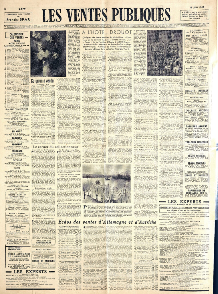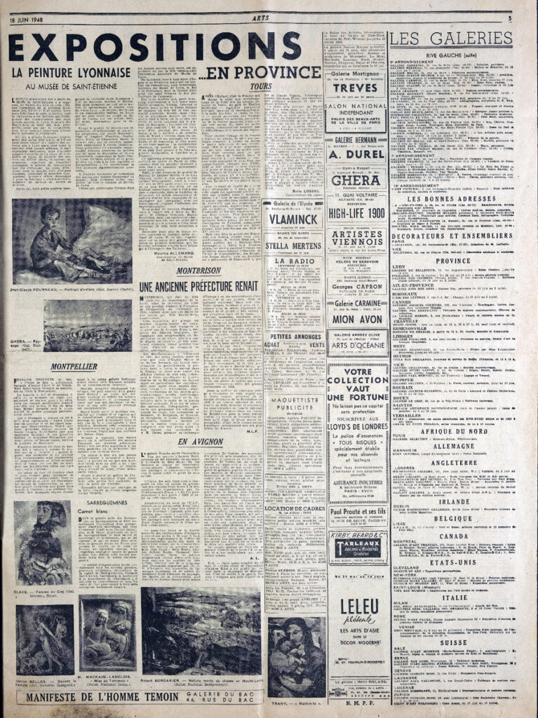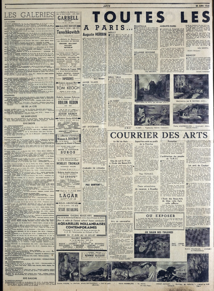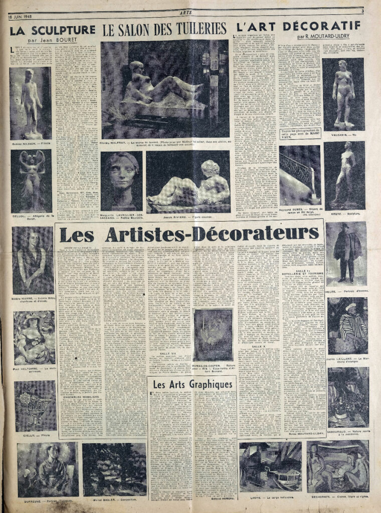 Έντυπο, στα γαλλικά, χαρτί, 3 φύλλα, 6 σελίδες, 60×43 εκ., όπου δημοσιεύονται άρθρα με τίτλους: B. Dorival “Du nouveau sur Poussin”, Georges Poisson “La Fontaine des Innocents est-elle de Pierre Lescot?”, Jean Bouret “Le Salon des Tuileries. La sculpture. L art Décoratif. Les Artistes-Décorateurs”, Edmond Humeau “Les Arts Graphiques”.