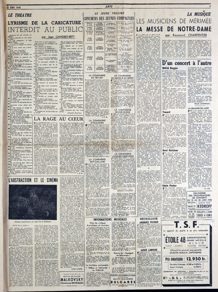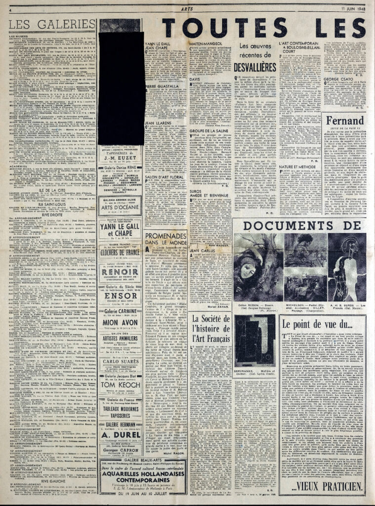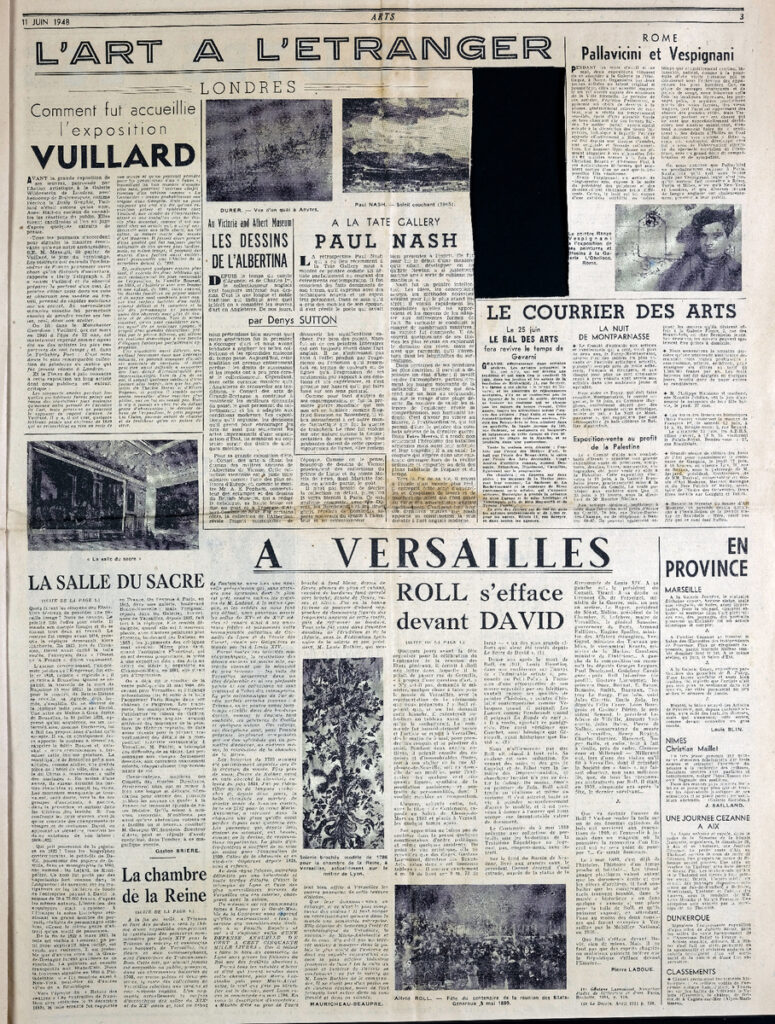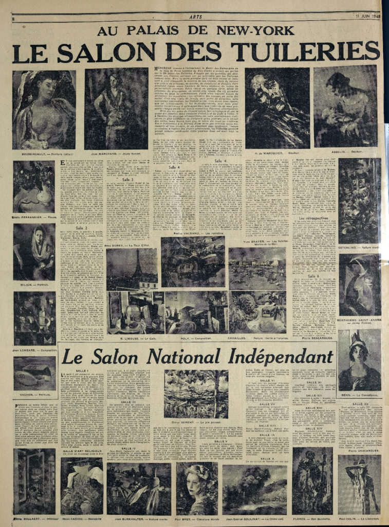 Έντυπο, στα γαλλικά, χαρτί, 4 φύλλα, 8 σελίδες, 60×43 εκ., όπου δημοσιεύονται άρθρα με τίτλους: Gaston Brière “La résurrection de la Salle du Sacre. Au Palais de Versailles”, “Fernand Léger”. Six chefs-d oeuvre de la Collection Georges Viau à la Galerie Charpentier”, Pierre Ladoue “A Versailles. Roll s efface devant David”, “Comment dut accuillie l exposition Vuillard”, André Lohte “L abstraction et le cinéma”, “Au Palais de New-York. Le Salon des Tuileries”.