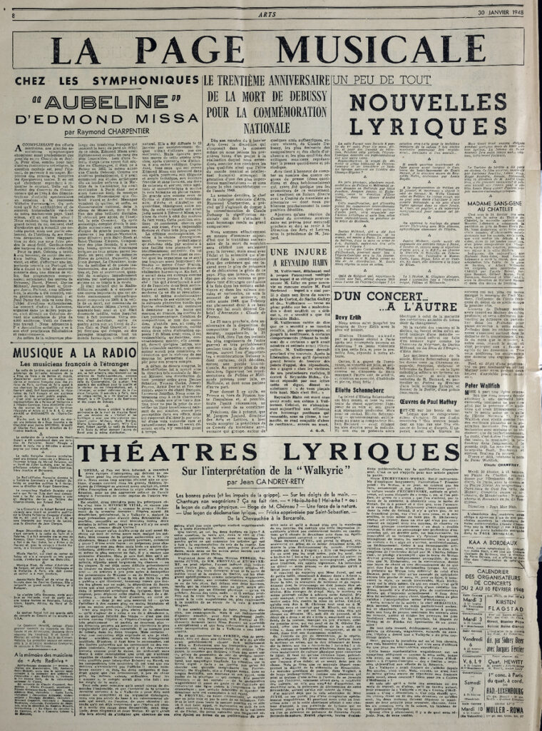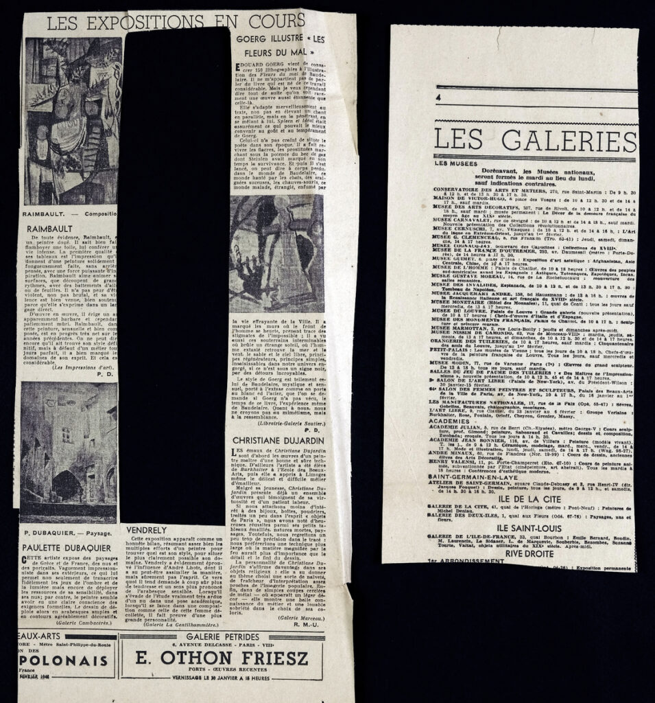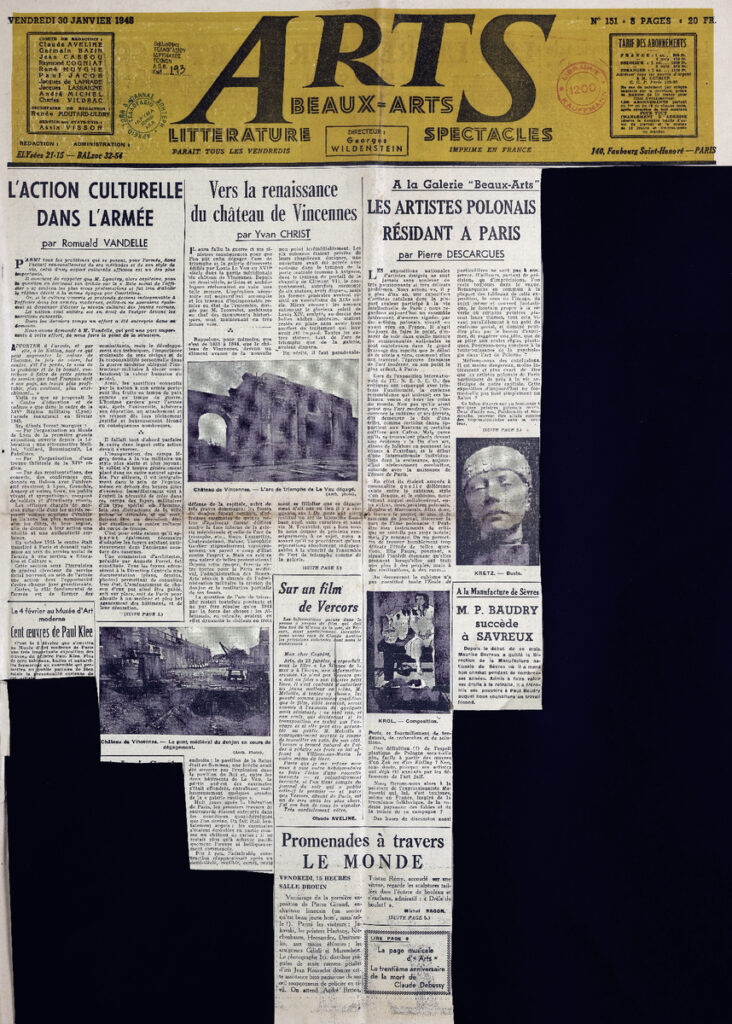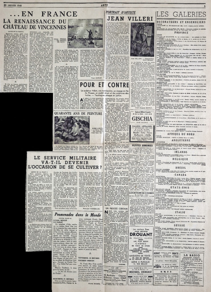Έντυπο, στα γαλλικά, χαρτί, 3 φύλλα, 6 σελίδες, 60×43 εκ., όπου δημοσιεύονται άρθρα με τίτλους: Romuald Vandelle “L action culturelle dans l armée”, Y. Christ “Vers la renaissance du château de Vincennes”, P. Descargues “Les artistes polonais résidant à Paris”, H.-J. Dupuy “Jean Villery”.