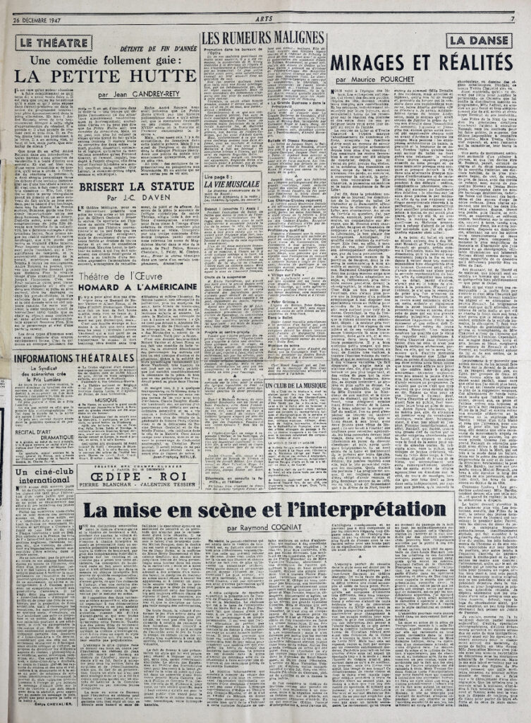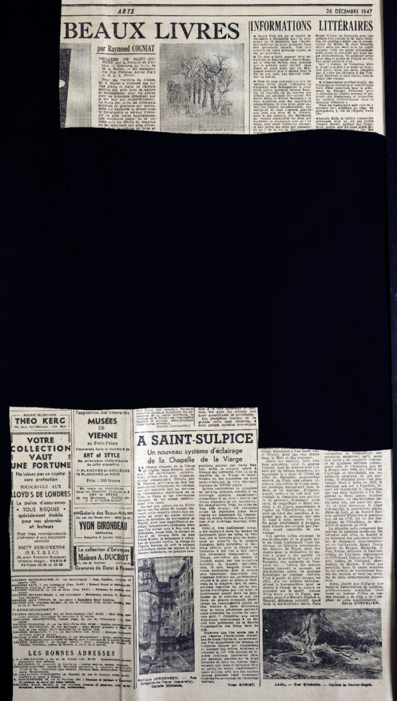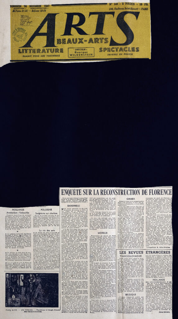 Έντυπο, στα γαλλικά, χαρτί, 5 φύλλα, 10 σελίδες, 60×43 εκ., όπου δημοσιεύονται άρθρα με τίτλους: S. Gille-Delafon “Enquête sur la reconstruction de Florence”, B. Lossky “L art a l Institut français d’Innsbruck”, D. Chevalier “À la Galerie Charpentier. Beautés de la Provence”.