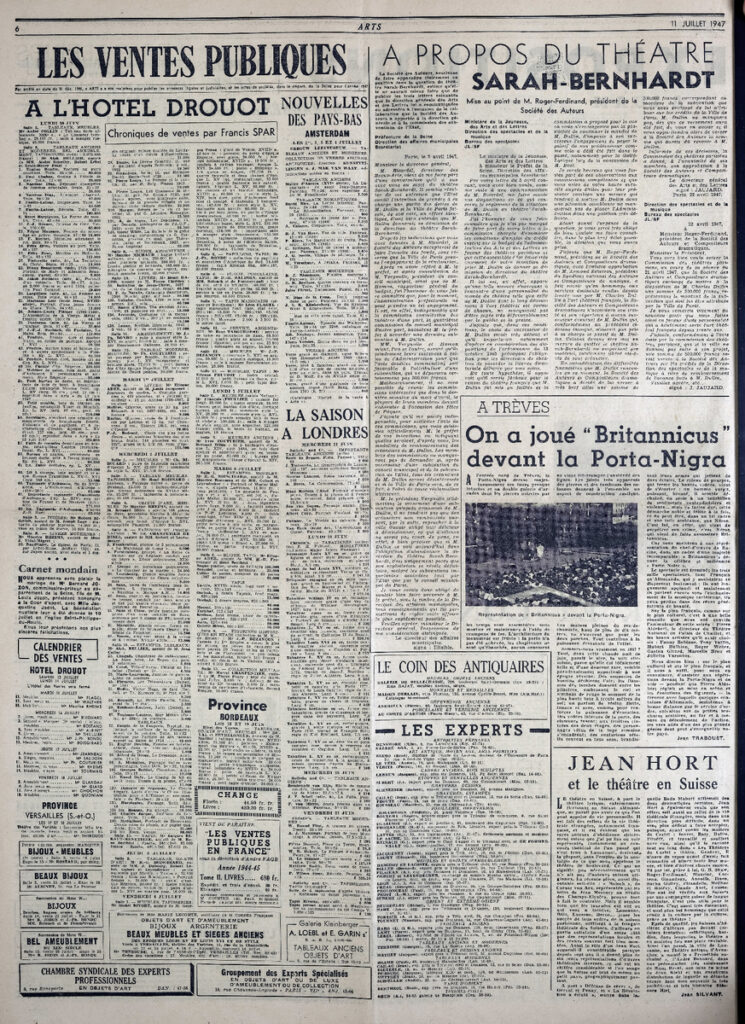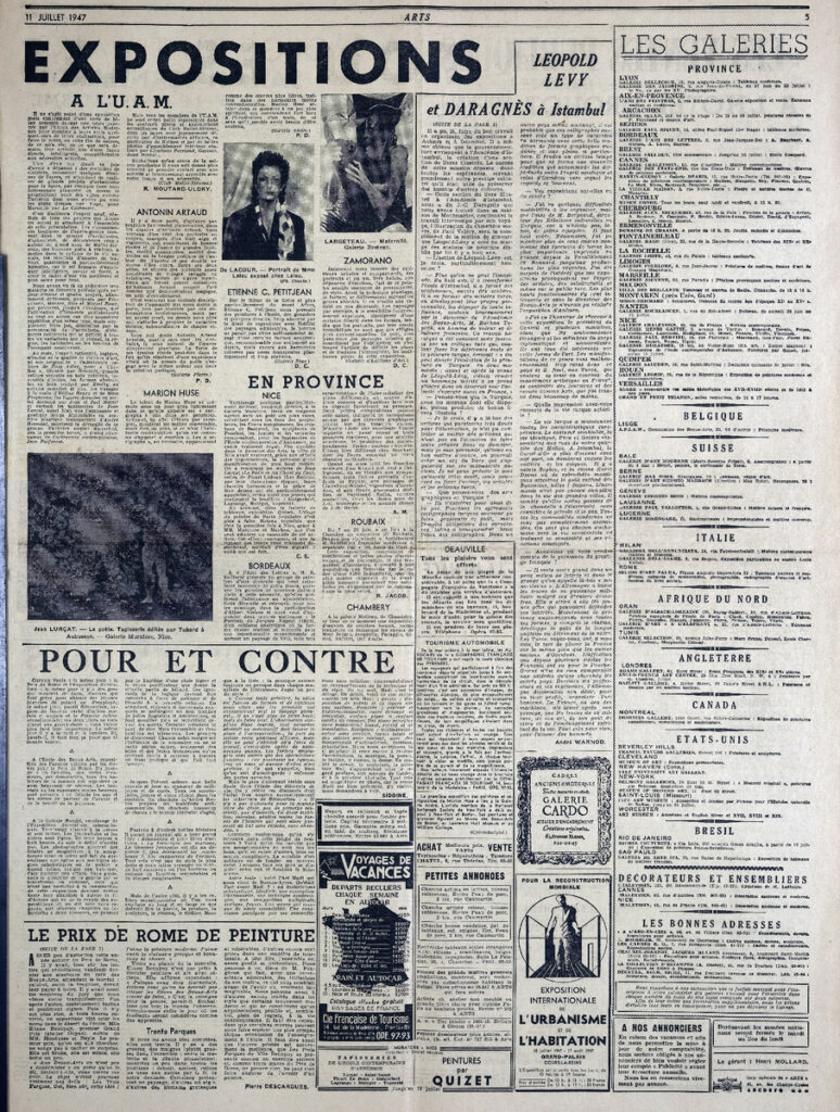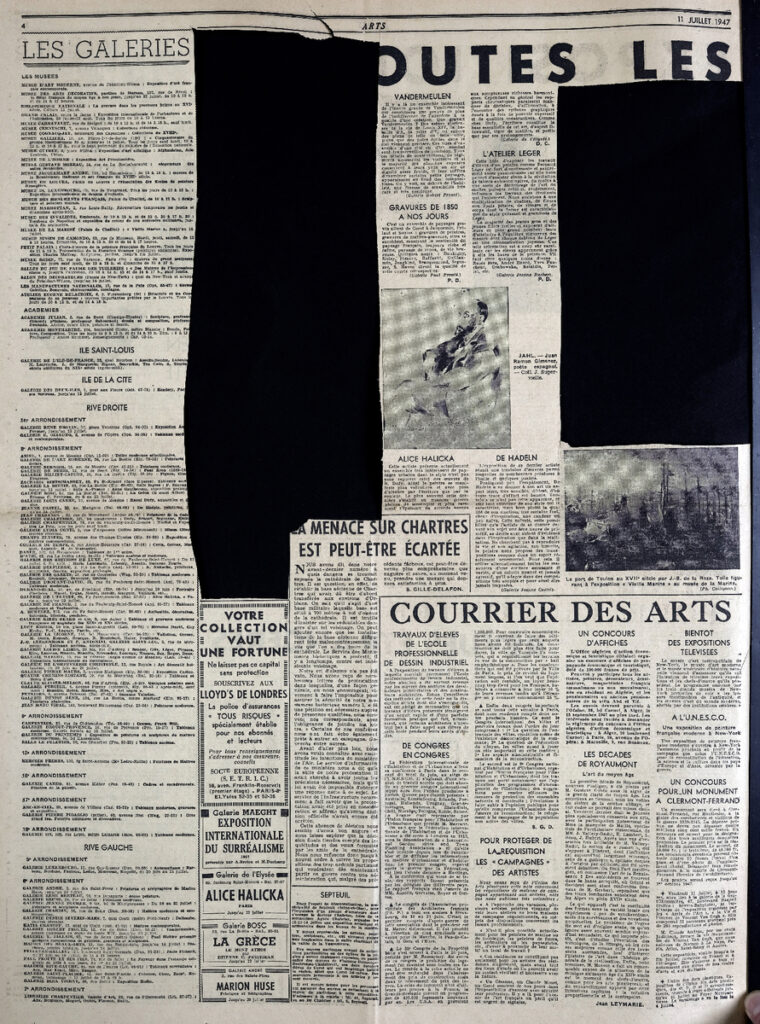 Έντυπο, στα γαλλικά, χαρτί, 3 φύλλα, 6 σελίδες, 60×43 εκ., όπου δημοσιεύονται άρθρα με τίτλους: Paul Mesple “Au Musée des Augustins de Toulouse. Comment fut réorganisée la mise en place des tableaux”, “A Puteaux. Décoration d une école”, “L’ Anglo-french Art Center: Couturier, Venardm Couderc”, “Don de deux nouveaux Fragonards”.