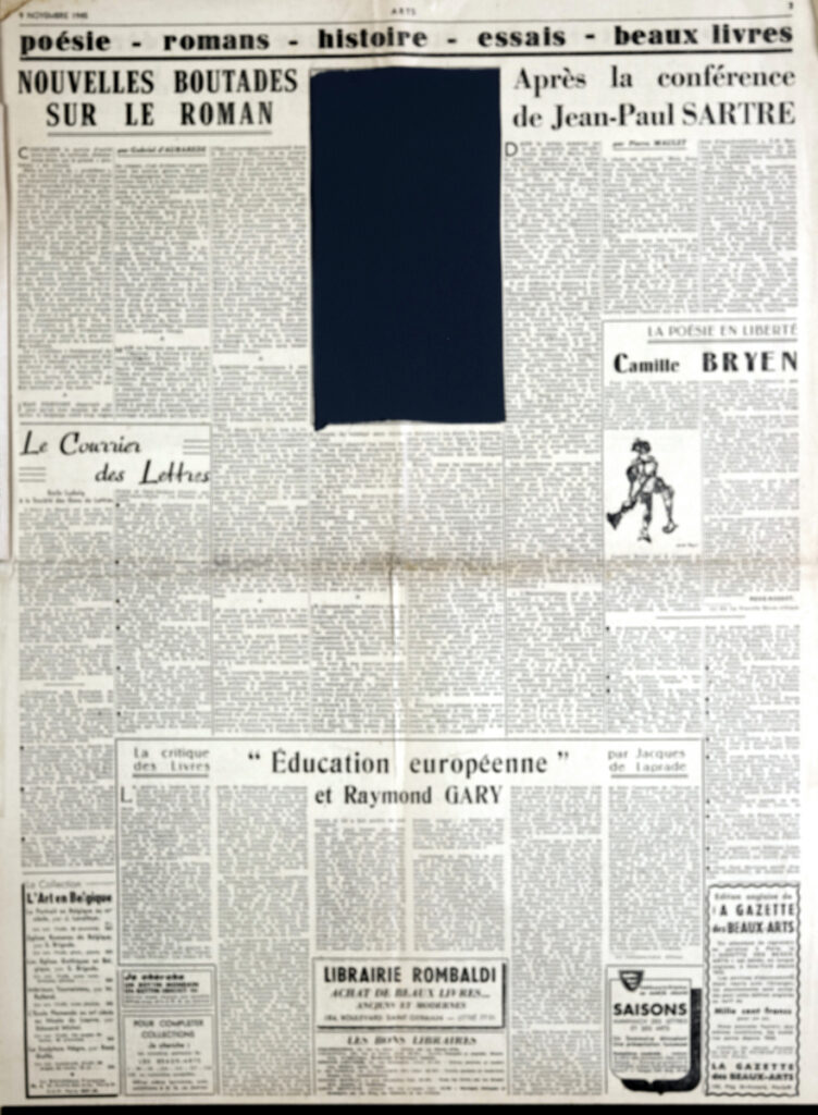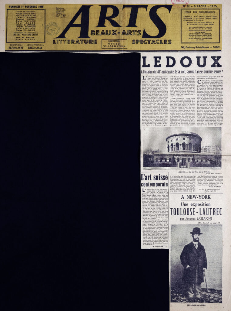 Έντυπο, στα γαλλικά, χαρτί, 3 φύλλα, 6 σελίδες, 60×43 εκ., όπου δημοσιεύονται άρθρα με τίτλους: Y. Christ “Ledoux. A l’ occasion du 140e anniversaire de sa mort, sauvera-t-on ses dernières oeuvres?”, J. Lassaigne “A New-York. Une exposition Toulouse-Lautrec”, “Vers la resurrection du musée”.