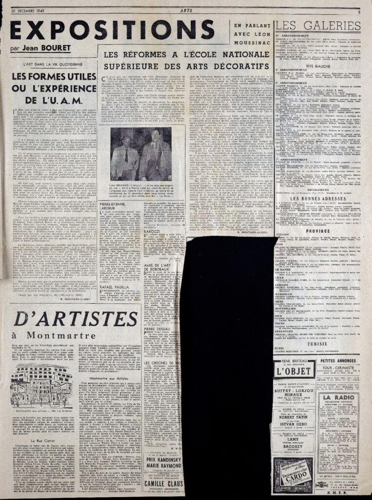 Έντυπο, στα γαλλικά, χαρτί, 4 φύλλα, 8 σελίδες, 56×43 εκ., όπου δημοσιεύονται άρθρα με τίτλους: “…De Zurich. Antoine Pevsner, Georges Vantongerloo et Max Bill à la Kunsthaus”, “… de Bruxelles. De l’ urbanisme à propos de l’ exposition”, “Une semaine à New-York”.