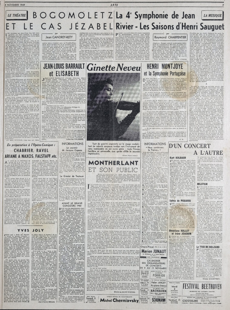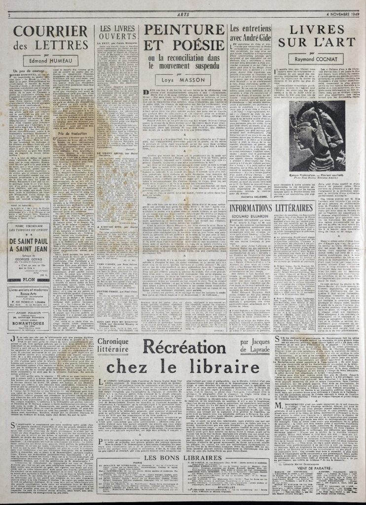 Έντυπο, στα γαλλικά, χαρτί, 4 φύλλα, 8 σελίδες, 56×43 εκ., όπου δημοσιεύονται άρθρα σχετικά με την καλλιτεχνική επικαιρότητα. Το τεκμήριο εικονογραφείται.