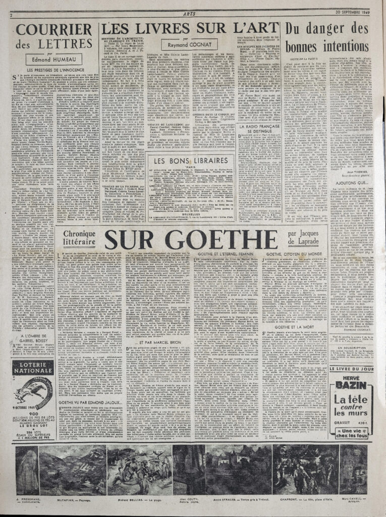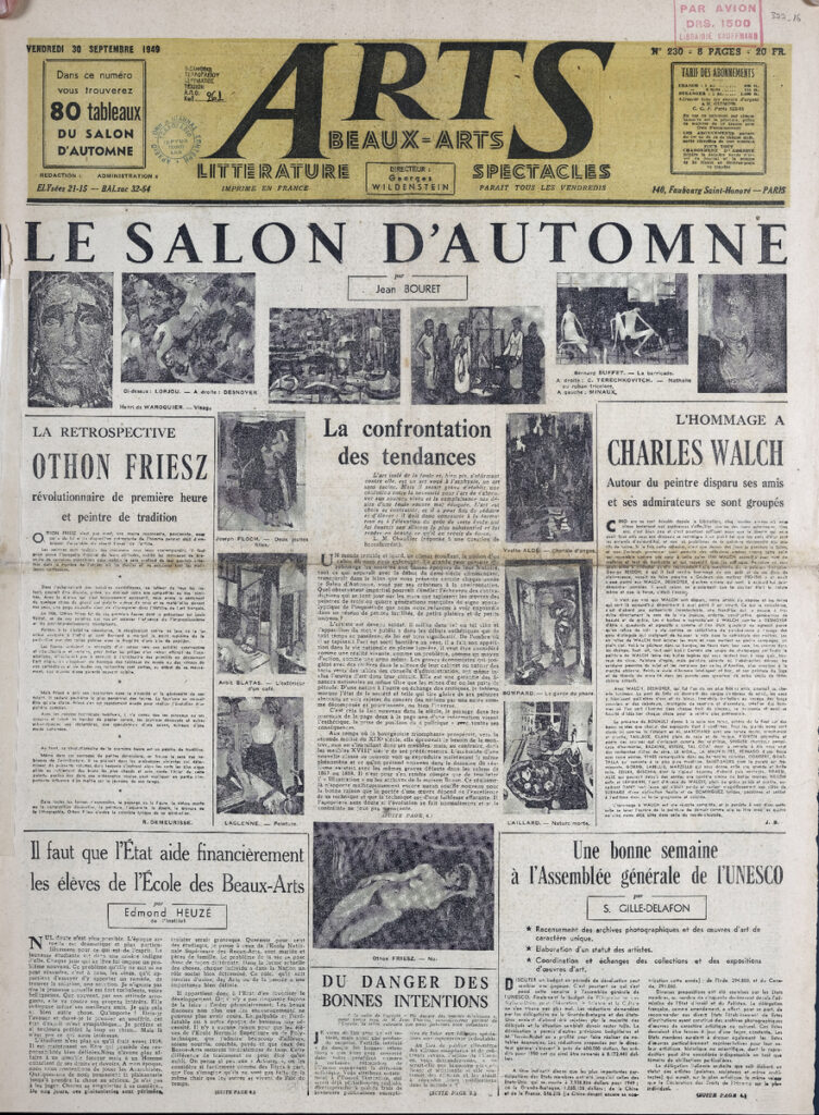 Έντυπο, στα γαλλικά, χαρτί, 3 φύλλα, 6 σελίδες, 56×43 εκ., όπου δημοσιεύονται άρθρα σχετικά με την καλλιτεχνική επικαιρότητα. Το τεκμήριο εικονογραφείται.