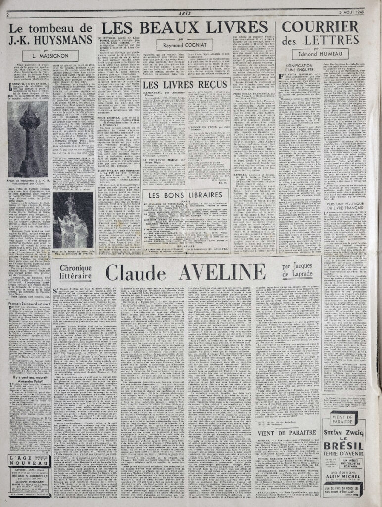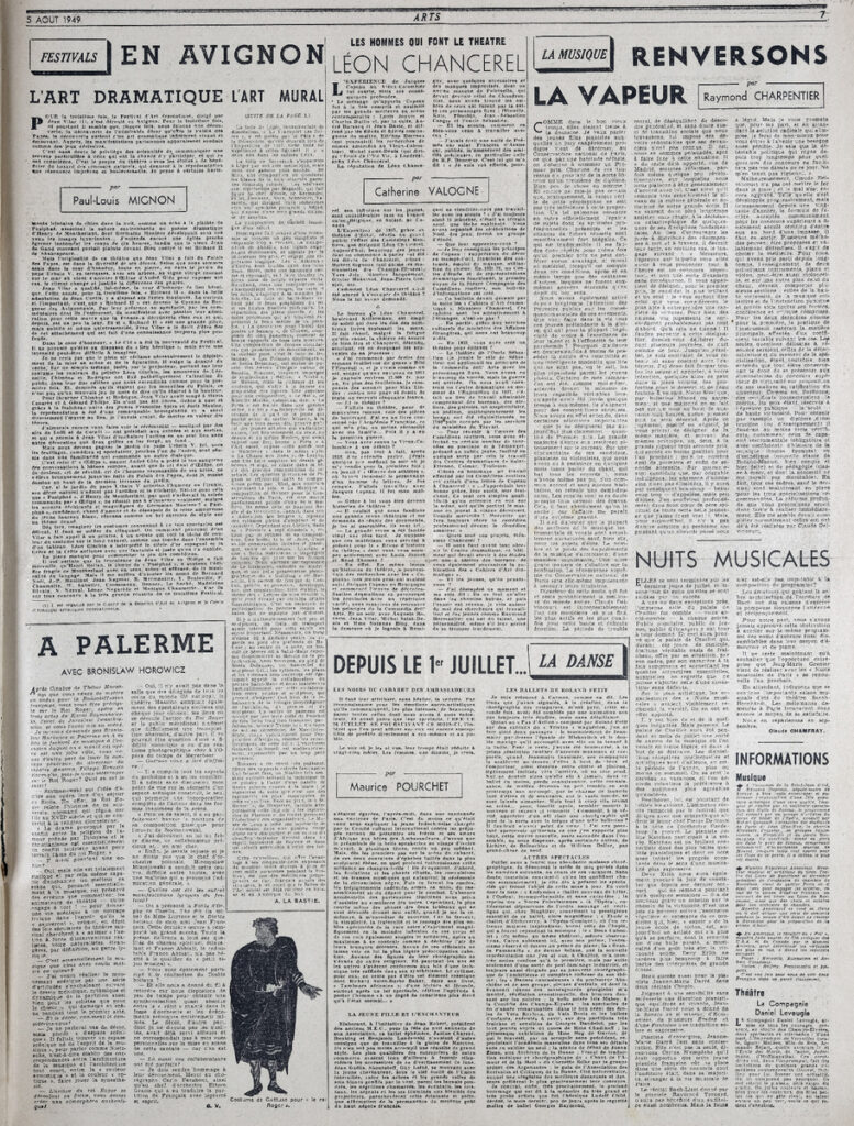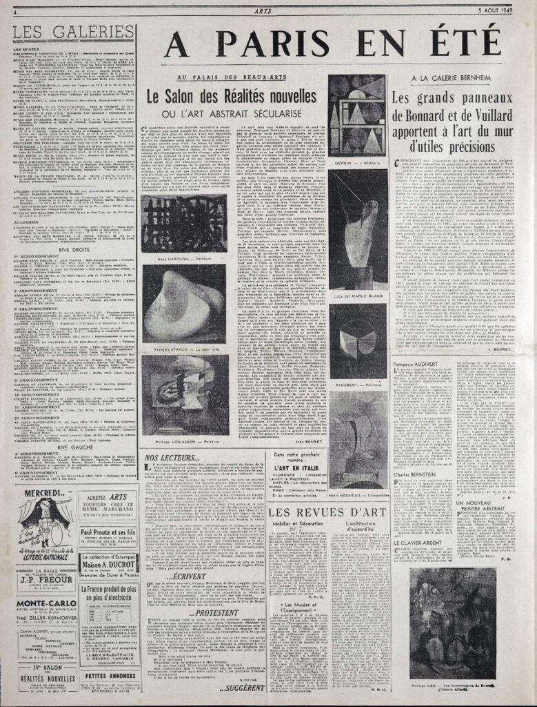 Έντυπο, στα γαλλικά, χαρτί, 4 φύλλα, 8 σελίδες, 56×43 εκ., όπου δημοσιεύονται άρθρα σχετικά με την καλλιτεχνική επικαιρότητα. Το τεκμήριο εικονογραφείται.