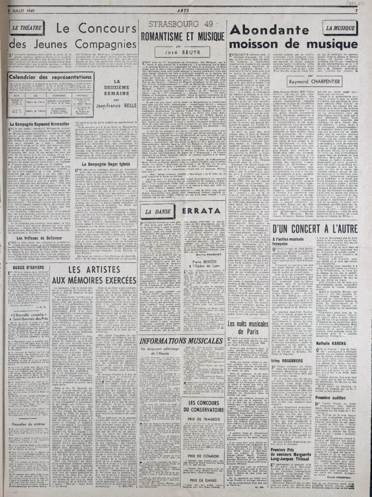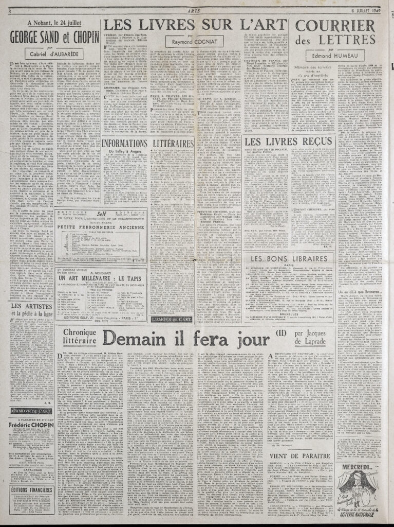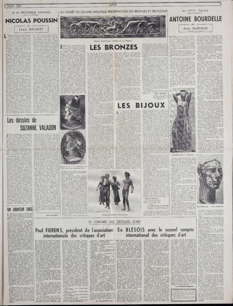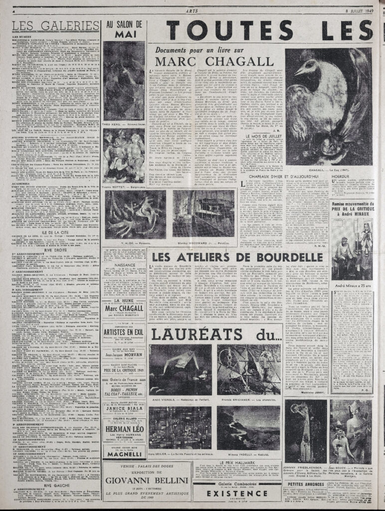 Έντυπο, στα γαλλικά, χαρτί, 4 φύλλα, 8 σελίδες, 56×43 εκ., όπου δημοσιεύονται άρθρα σχετικά με την καλλιτεχνική επικαιρότητα. Το τεκμήριο εικονογραφείται.