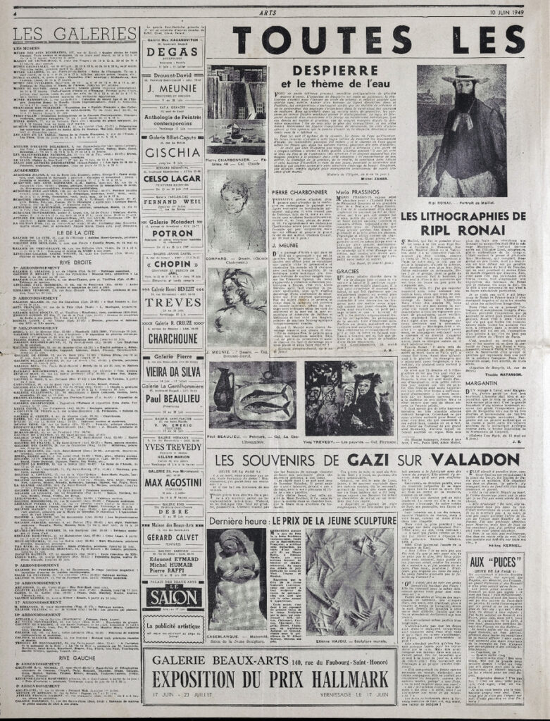 Έντυπο, στα γαλλικά, χαρτί, 4 φύλλα, 8 σελίδες, 56×43 εκ., όπου δημοσιεύονται άρθρα σχετικά με την καλλιτεχνική επικαιρότητα. Το τεκμήριο εικονογραφείται.