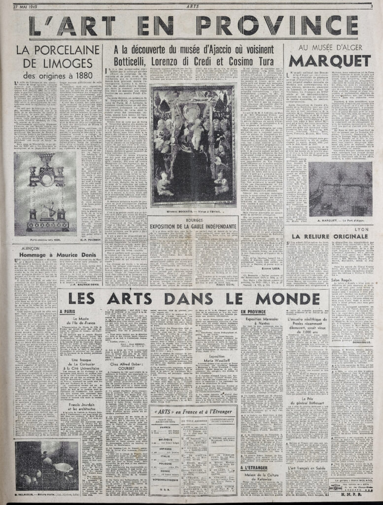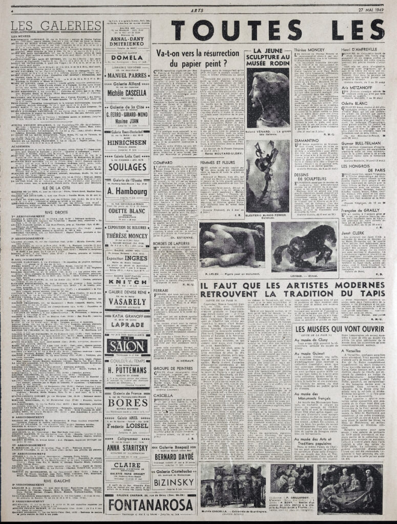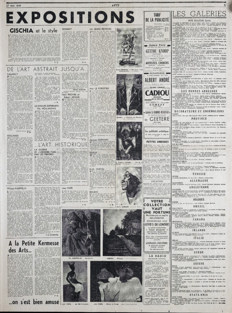 Έντυπο, στα γαλλικά, χαρτί, 3 φύλλα, 6 σελίδες, 56×43 εκ., όπου δημοσιεύονται άρθρα σχετικά με την καλλιτεχνική επικαιρότητα. Το τεκμήριο εικονογραφείται.