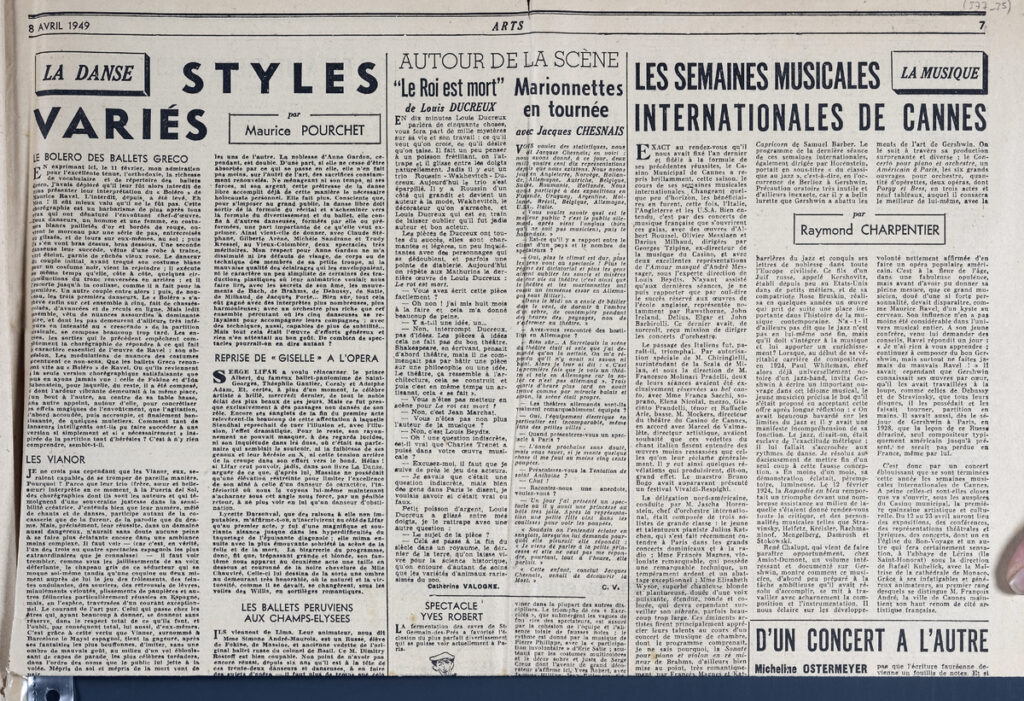 Έντυπο, στα γαλλικά, χαρτί, 4 φύλλα, 8 σελίδες, 56×43 εκ., όπου δημοσιεύονται άρθρα σχετικά με την καλλιτεχνική επικαιρότητα. Το τεκμήριο εικονογραφείται.
