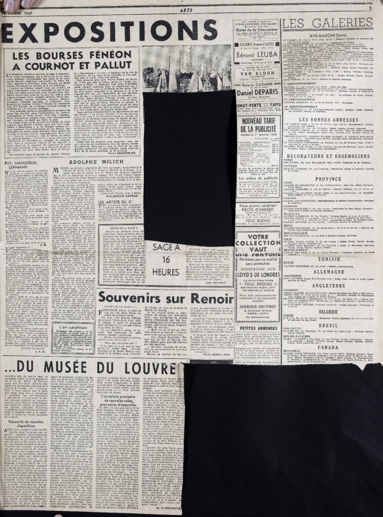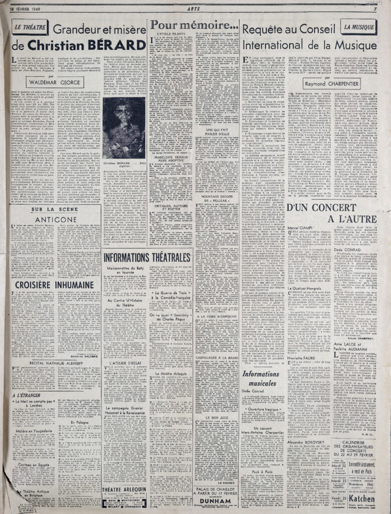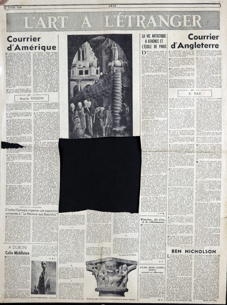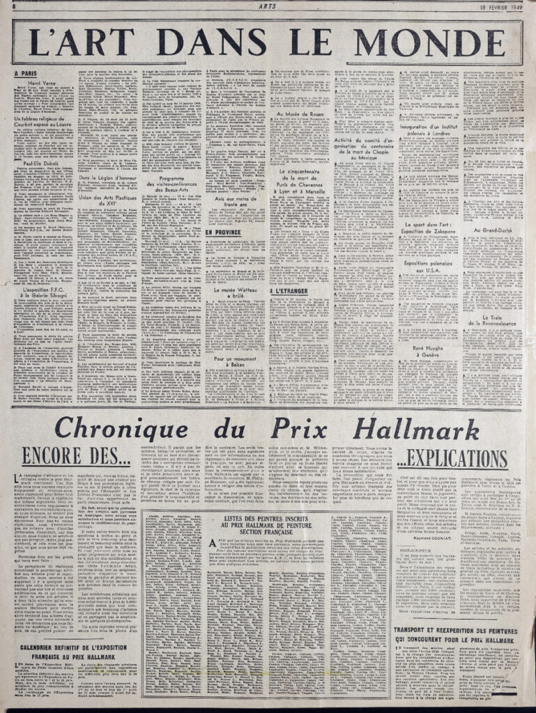 Έντυπο, στα γαλλικά, χαρτί, 4 φύλλα, 8 σελίδες, 56×43 εκ., όπου δημοσιεύονται άρθρα σχετικά με την καλλιτεχνική επικαιρότητα. Το τεκμήριο εικονογραφείται.
